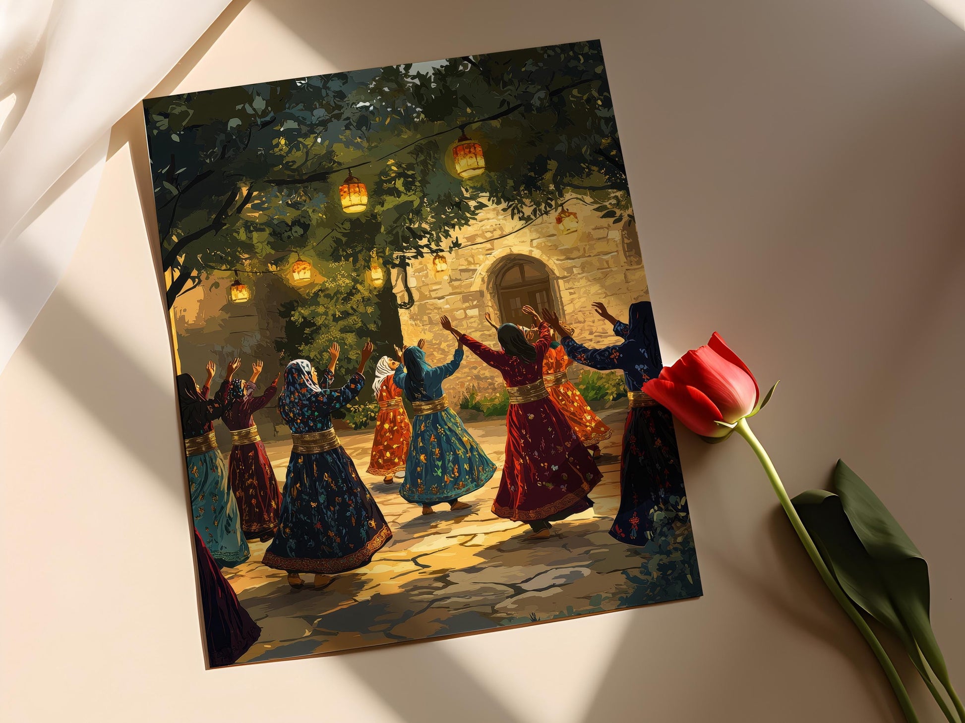 Affiche Danse Palestinienne – Poster Scène Traditionnelle Féminine