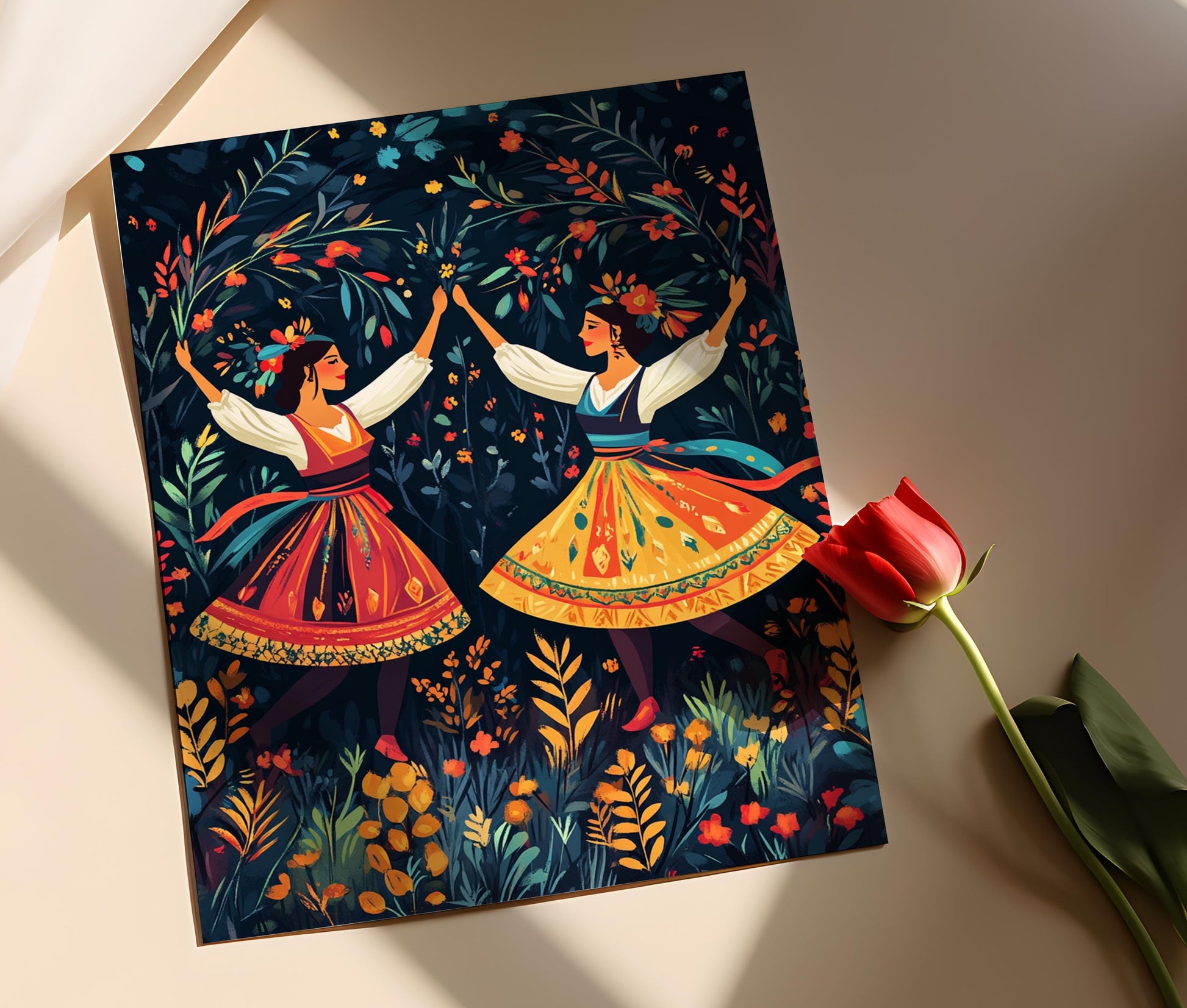 Découvrez cette magnifique affiche qui célèbre l'énergie des danses traditionnelles du Kosovo. Avec ses illustrations vibrantes de danseurs en costumes folkloriques colorés, cette décoration murale apportera une touche festive et chaleureuse à votre intérieur. Parfaite pour un art mural qui évoque la richesse du patrimoine culturel, elle saura captiver l'attention et enrichir votre espace de vie.