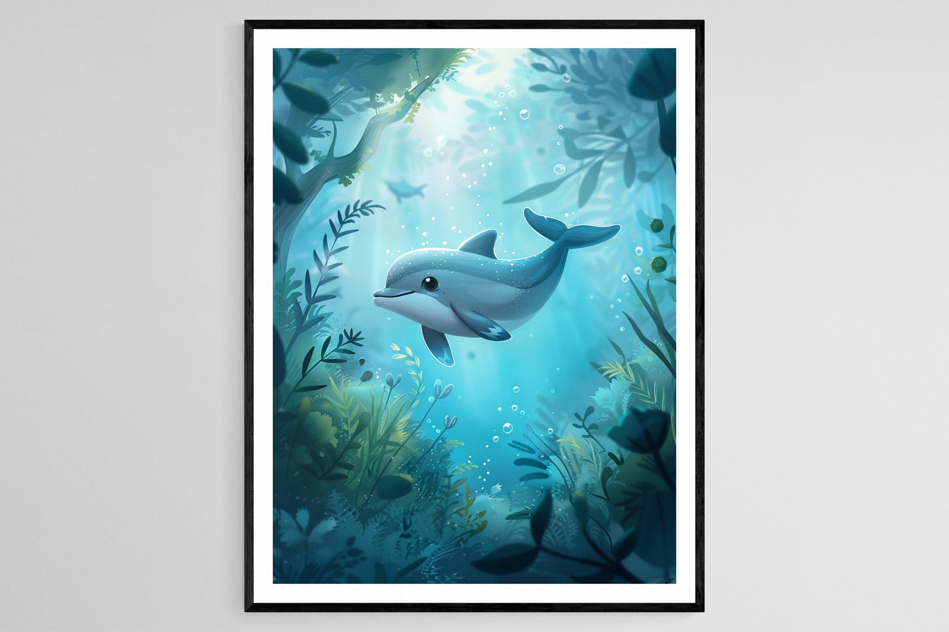 Éveillez l'imagination de votre enfant avec cette affiche marine illustrant des dauphins joueurs, parfaite pour une décoration murale douce et colorée. L'illustration vibrante capture la magie de l'océan, apportant une touche d'émerveillement et de joie à toute chambre ou salle de jeux. Ce poster mural célèbre la beauté des créatures marines, transformant l'espace en un véritable havre de paix et d'harmonie.