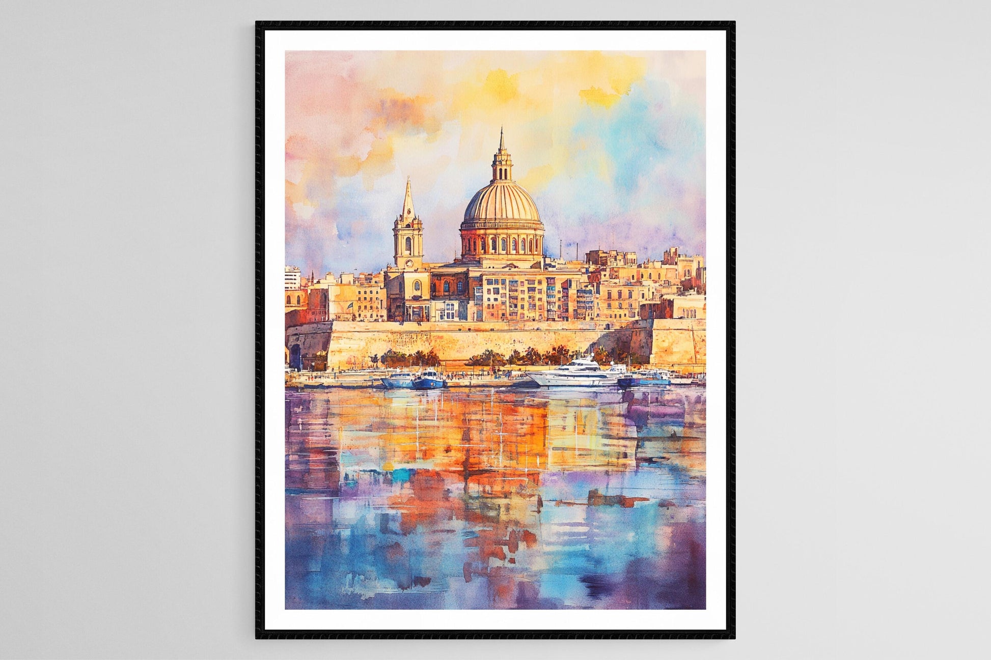 Affiche de la Skyline de La Valette – Vue au coucher de soleil, bâtiments historiques