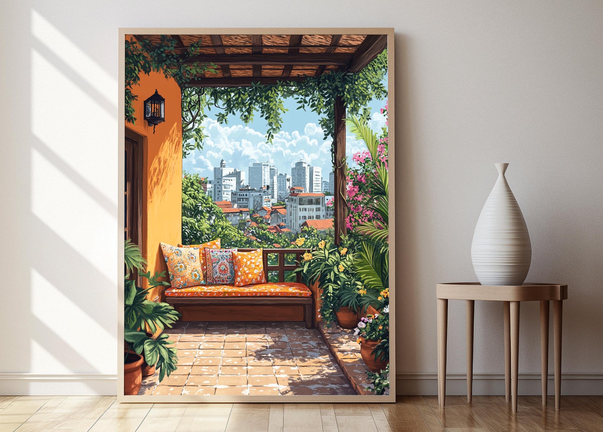 Découvrez cette affiche captivante qui évoque la magie de Dhaka à travers une illustration vibrante. Avec ses meubles en bambou, ses coussins en coton Jamdani colorés et ses fleurs de souci, ce poster mural vous plonge dans une ambiance chaleureuse et accueillante, tout en mettant en valeur l’architecture emblématique de la ville. Parfait pour une décoration murale qui apporte une touche d’exotisme et de sérénité à votre intérieur.