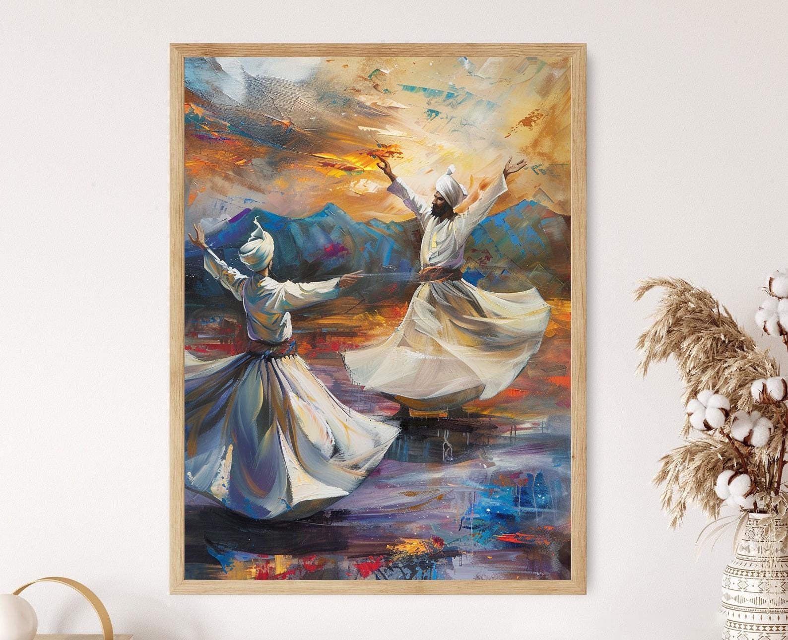 Plongez dans l'envoûtement spirituel avec cette affiche unique représentant des derviches tourneurs. L'illustration captivante évoque la danse mystique et la dévotion, apportant une sérénité profonde à votre décoration murale. Ce poster mural, alliant tradition et émotion, saura séduire les amateurs d'art mural à la recherche de connexions profondes et authentiques.