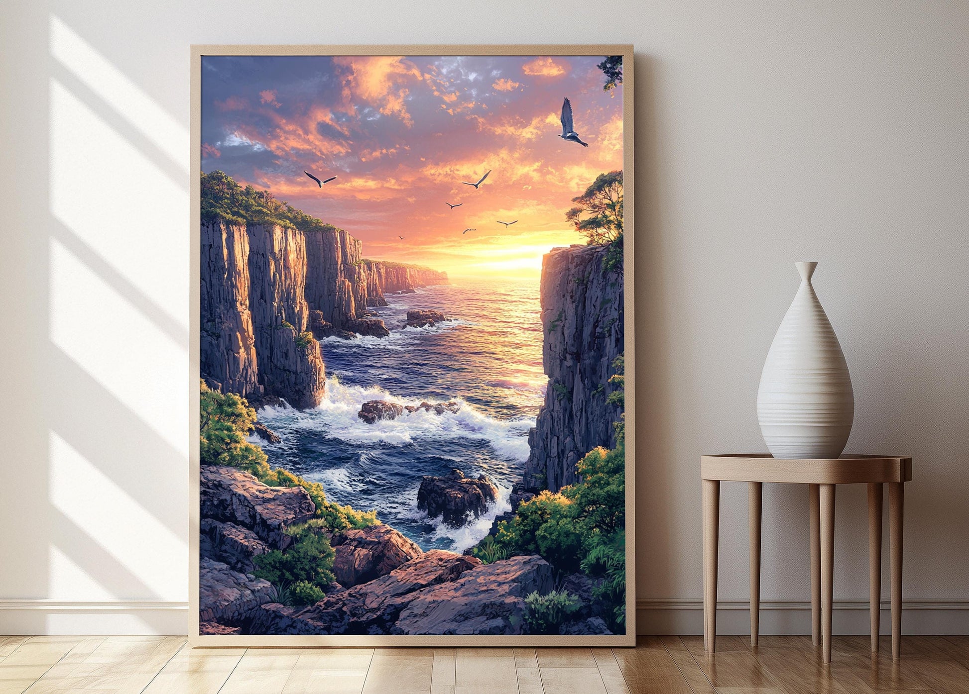 Affiche des Falaises Culinaires du Diable de Tasmanie – Poster Paysage Côtier