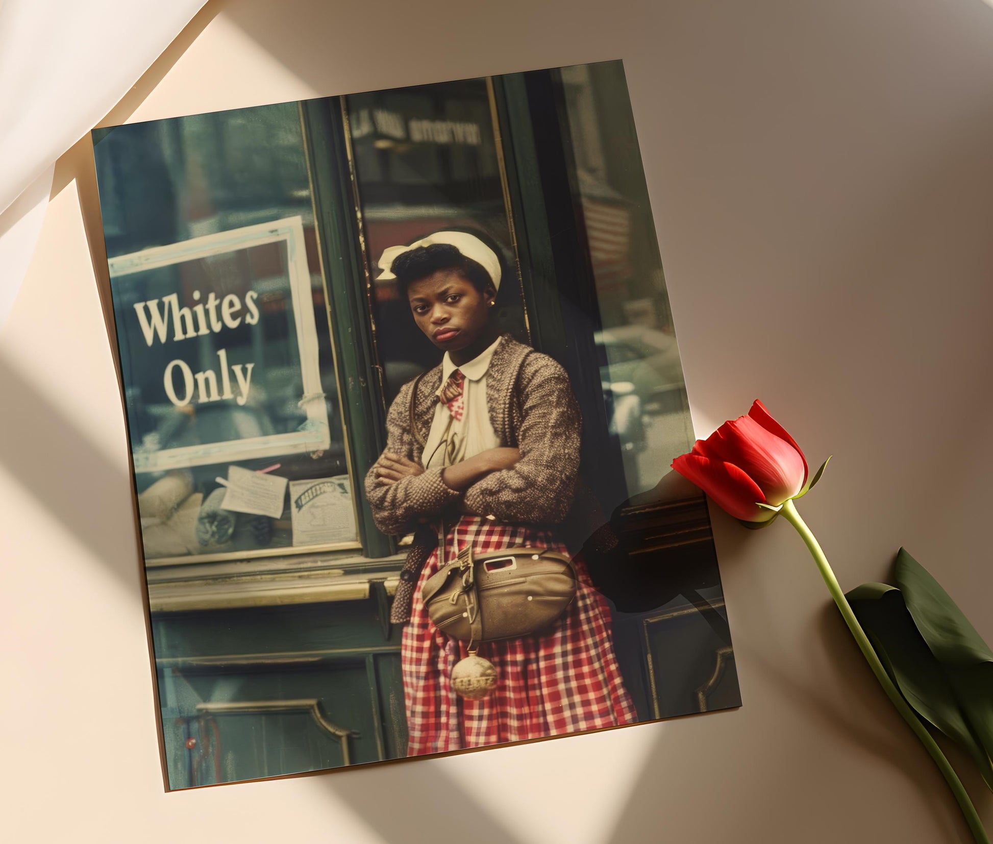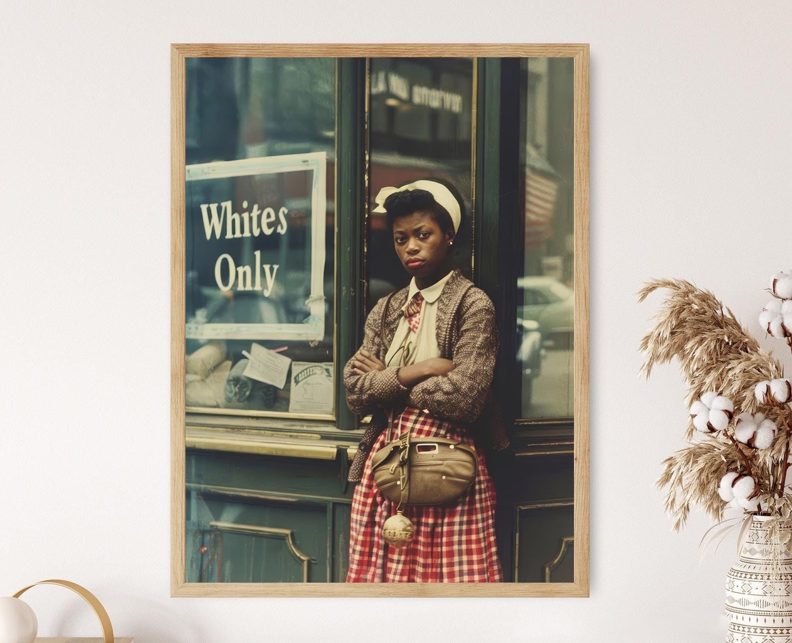 Découvrez cette affiche saisissante, "We Serve Whites Only", qui évoque les luttes poignantes pour l'égalité et la justice sociale. Cette illustration, inspirée des signes emblématiques d'une époque critique, apporte une émotion forte à votre décoration murale, transformant votre espace en une réflexion sur l'histoire. Parfaite comme poster mural, elle saura captiver tous ceux qui passent et éveiller les consciences à travers l'art mural.