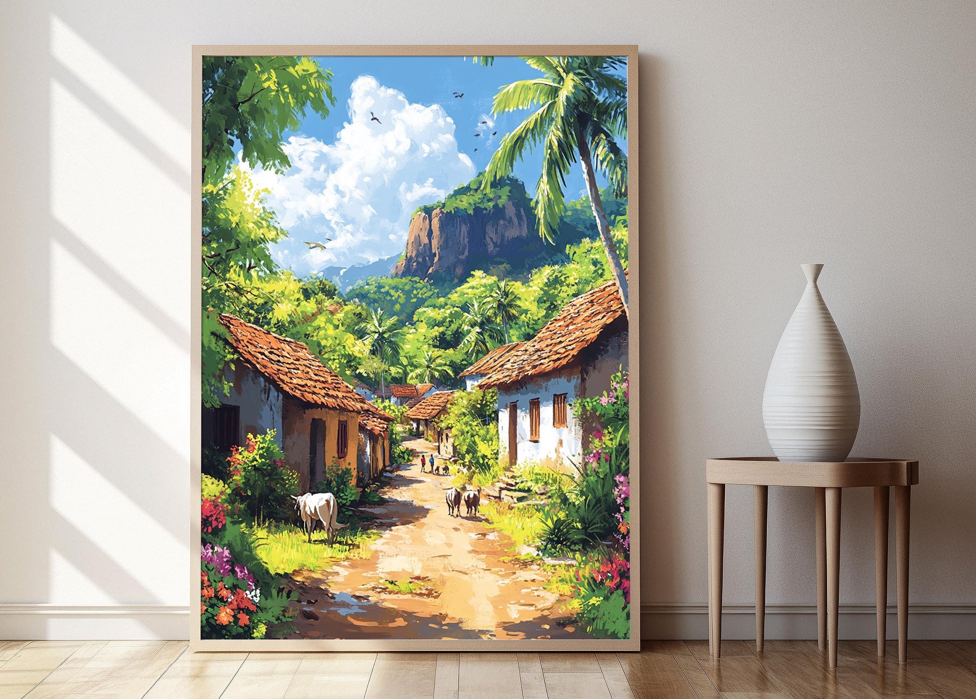 Affiche du Village de Sigiriya – Poster Illustré du Patrimoine Sri-Lankais