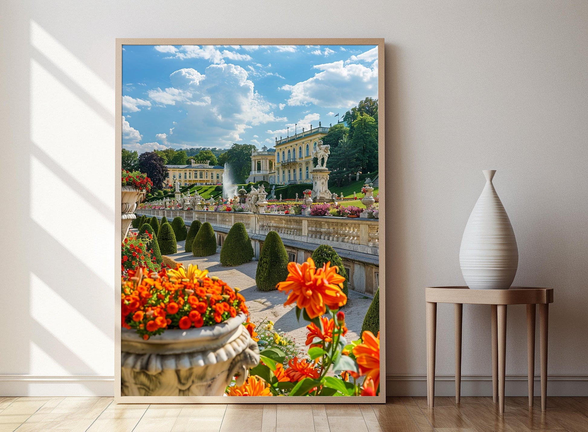 Découvrez notre affiche captivante représentant le majestueux Palais de Schönbrunn à Vienne, symbole de l'élégance de la dynastie Habsbourg. Cette illustration artistique allie des détails architecturaux riches à une palette de couleurs raffinées, apportant une touche de sophistication à votre décoration murale. Idéale pour sublimer votre espace, ce poster mural évoque l'histoire et le charme d'un patrimoine culturel inestimable.