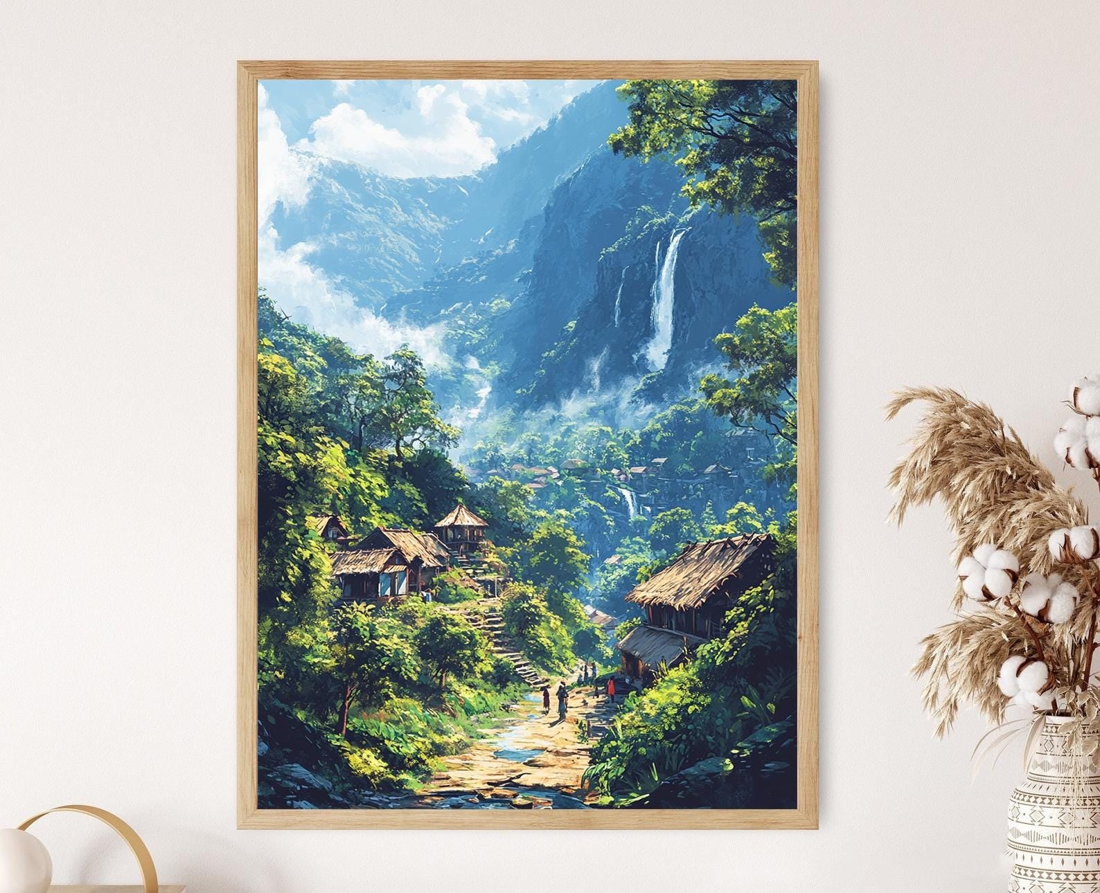 Découvrez cette magnifique affiche qui évoque la beauté naturelle d'Ella, avec ses forêts luxuriantes, ses cascades apaisantes et la vie de village pittoresque. Cette illustration captivante apporte une touche de charme rural et de sérénité à votre décoration murale, transformant votre espace en un havre de paix inspiré par la nature. Idéale pour les amateurs d'art mural, ce poster mural vous invite à plonger dans la magie de la campagne sri-lankaise.