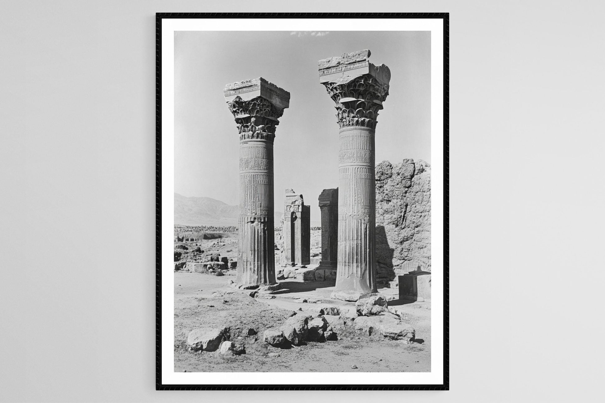 Découvrez notre affiche captivante représentant les ruines majestueuses de Persépolis, l'ancienne capitale de l'Empire achéménide. Cette illustration met en avant les colonnes imposantes et les sculptures en relief détaillées, créant une ambiance à la fois historique et empreinte de mystère. Parfaite comme décoration murale, ce poster mural invite à la contemplation et à l'évasion vers un passé glorieux.