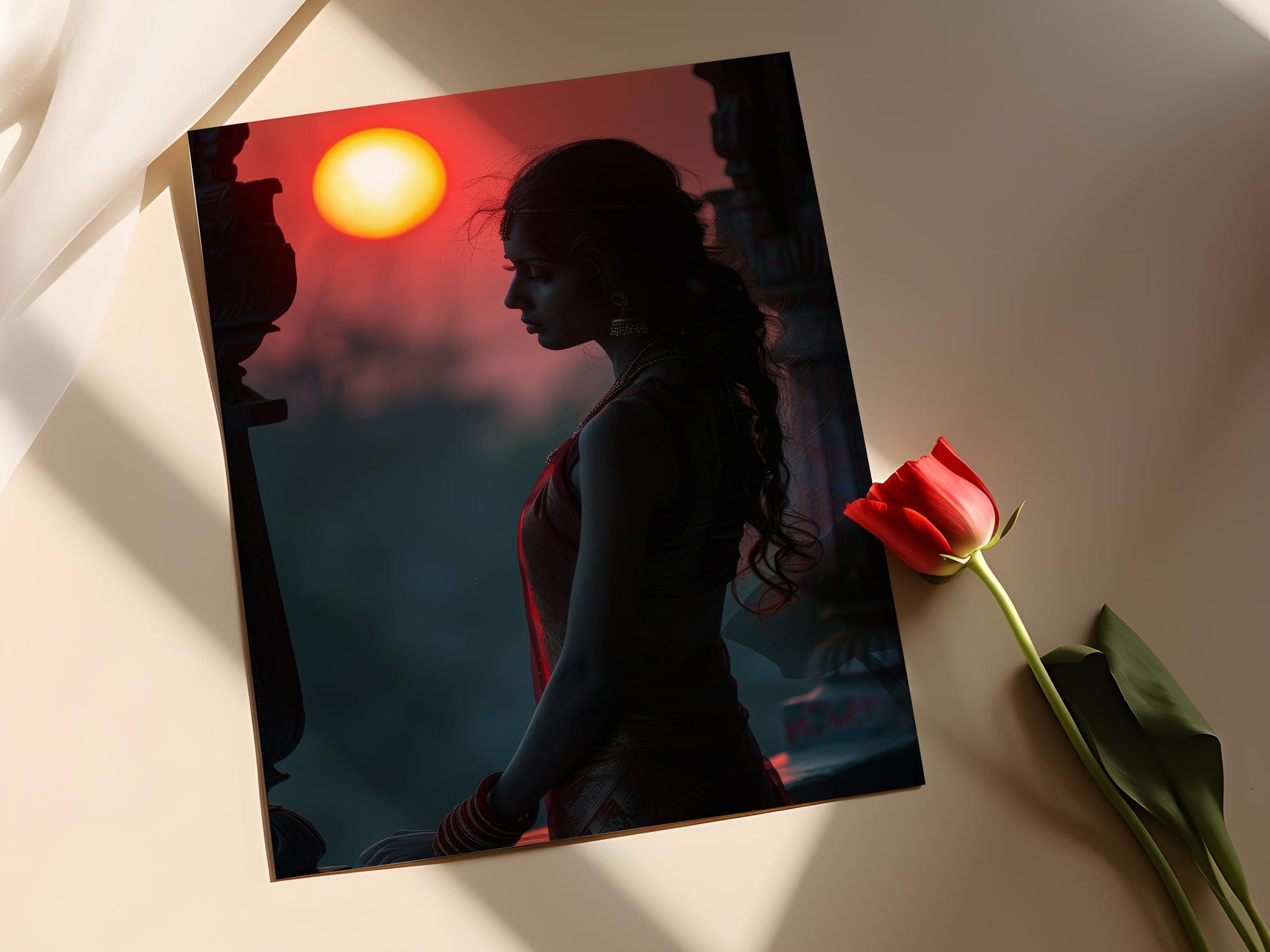 Découvrez cette magnifique affiche mettant en scène une femme indienne élégante vêtue d'un saree traditionnel. L'illustration riche en détails et en couleurs vibrantes capture l'essence de la culture indienne, ajoutant une touche d'émotion et de raffinement à votre décoration murale. Ce poster mural est parfait pour ceux qui apprécient l'art mural inspiré par les traditions et la beauté intemporelle.