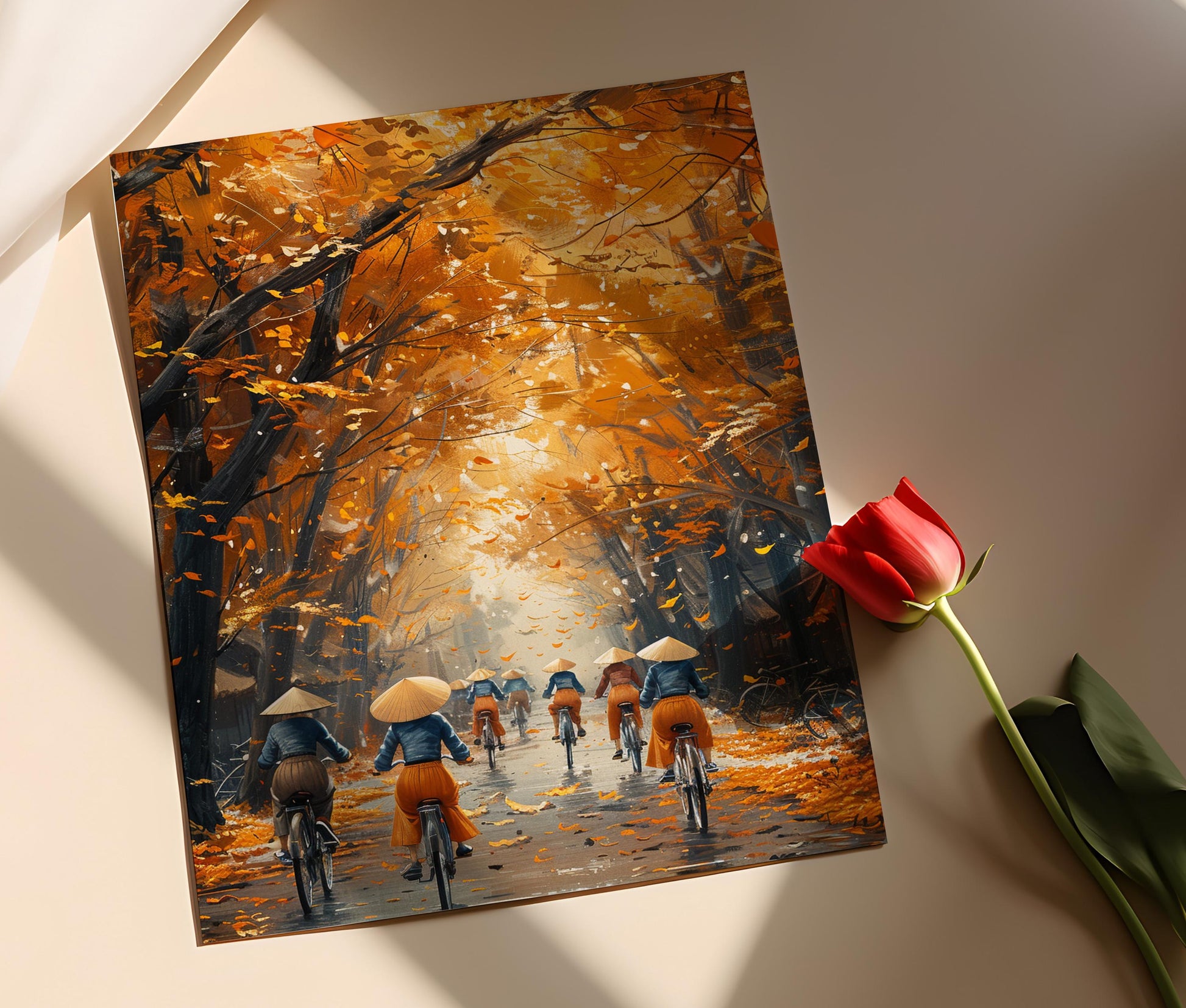 Affiche Femmes Vietnamiennes à Vélo – Poster Peinture de Hô Chi Minh