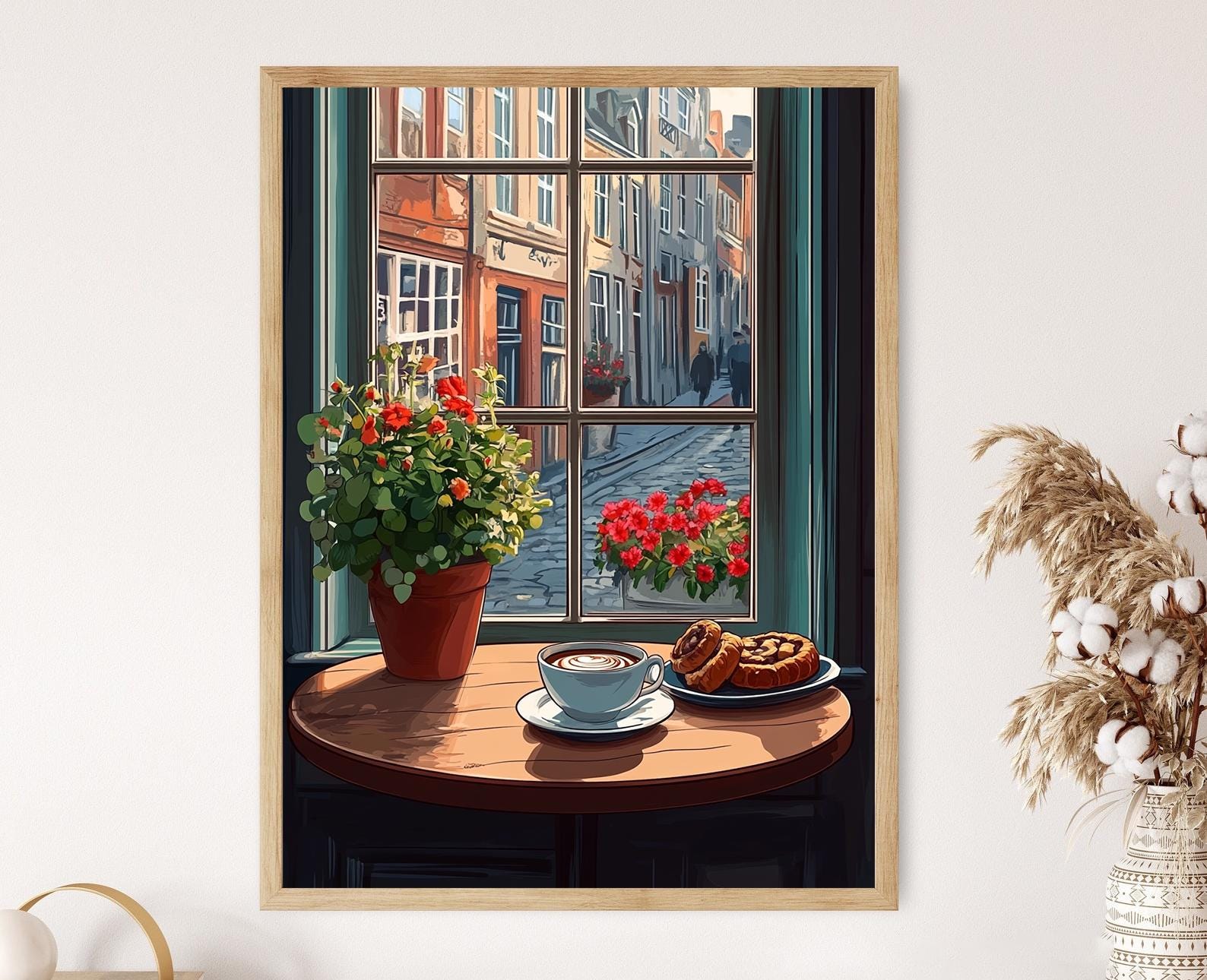 Plongez dans l'atmosphère chaleureuse de notre affiche "Fika", une illustration qui évoque la douceur d'un moment de pause dans un café. Avec ses délicieuses pâtisseries suédoises et la lumière douce d'une ville en arrière-plan, ce poster mural apporte une touche de sérénité et de convivialité à votre décoration murale. Idéal pour créer une ambiance apaisante dans votre cuisine ou votre coin café, cet art mural invite à la détente et à l'appréciation de la beauté des petits plaisirs.