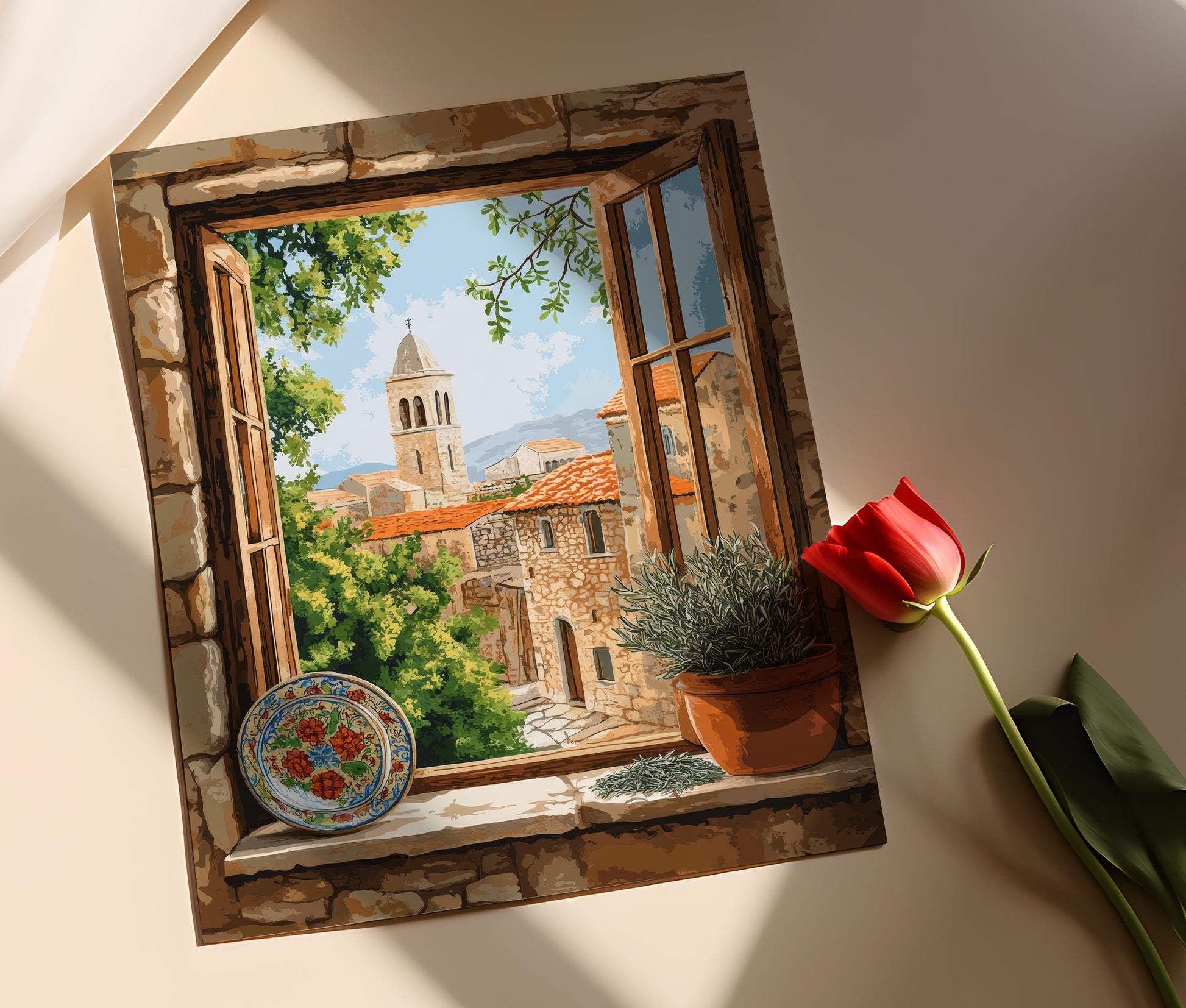 Découvrez notre affiche captivante qui met en lumière une fenêtre en bois palestinien délicatement ornée, offrant une vue apaisante sur l'Église de la Nativité à Bethléem. Cette illustration riche en détails, avec son inlay en nacre et ses assiettes en céramique, évoque une atmosphère de sérénité et d'harmonie, parfaite pour sublimer votre décoration murale et apporter une touche d'art mural authentique à votre intérieur. Ajoutez cette œuvre à votre collection de posters muraux pour une ambiance chaleureuse et inspirante.