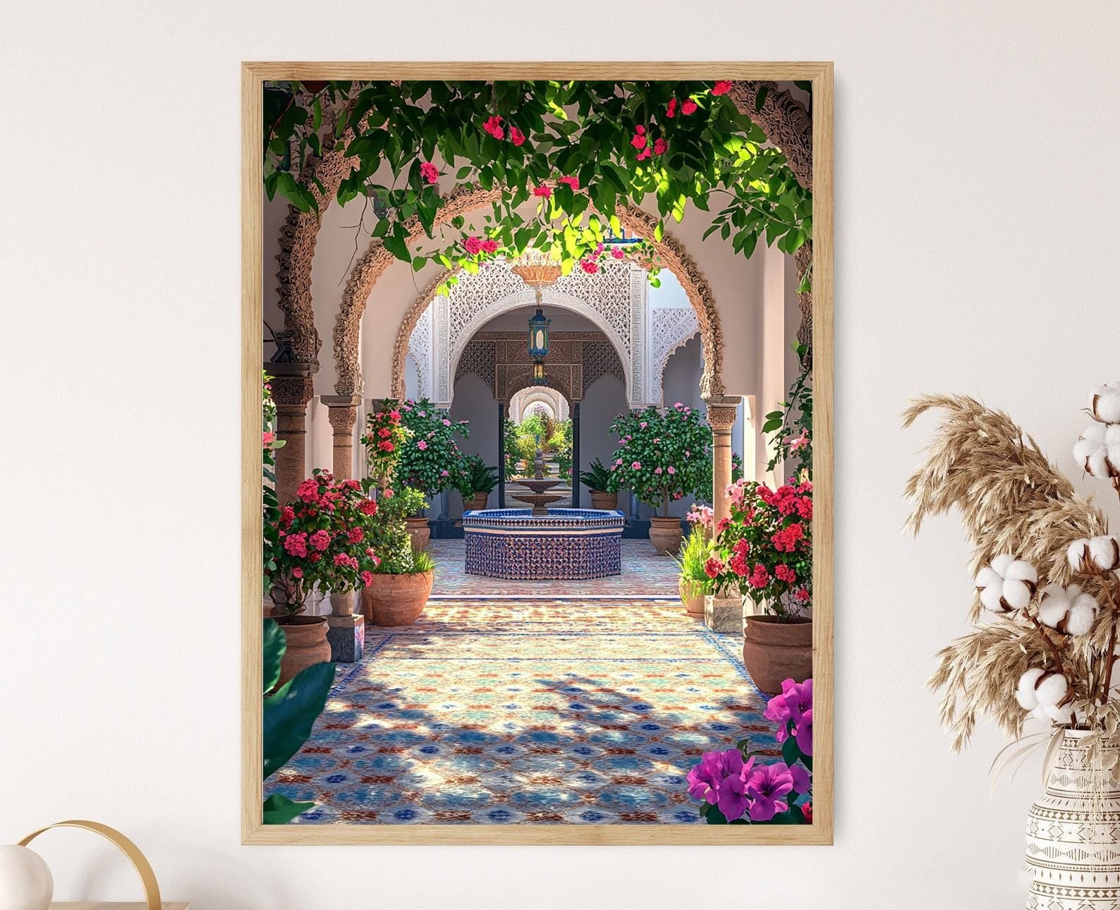 Découvrez notre affiche Grenade, une illustration captivante qui évoque la beauté des fontaines nasrides ornées de délicats arcs en stuc. Cette décoration murale transporte l'observateur dans un monde de sérénité et de raffinement, où les géraniums ajoutent une touche de couleur vibrante et de fraîcheur. Idéale pour enrichir votre art mural, cette affiche saura insuffler une ambiance chaleureuse et nostalgique à votre intérieur.