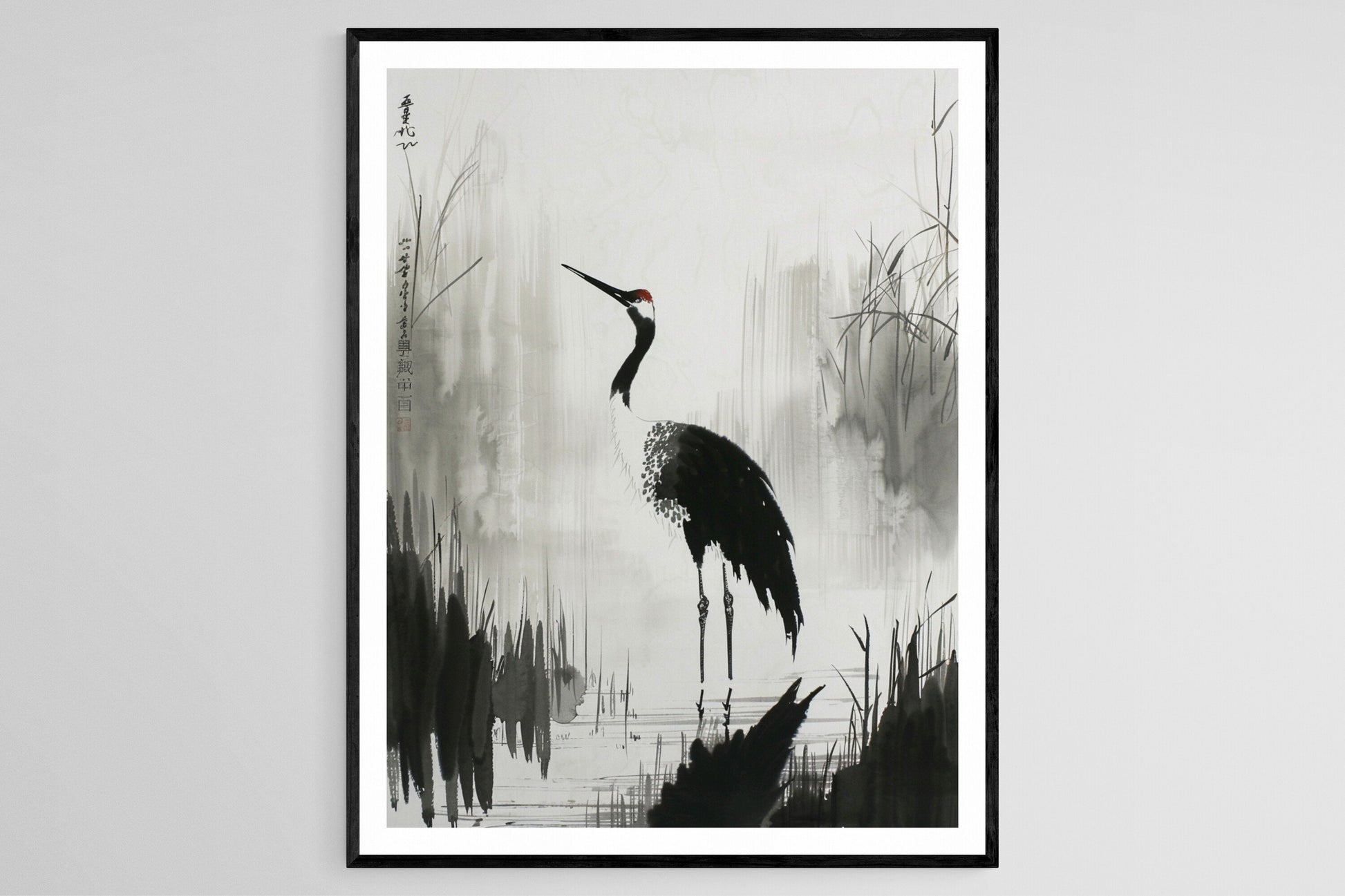 Affiche Grue en Sumi-e – Tableau apaisant pour une déco zen