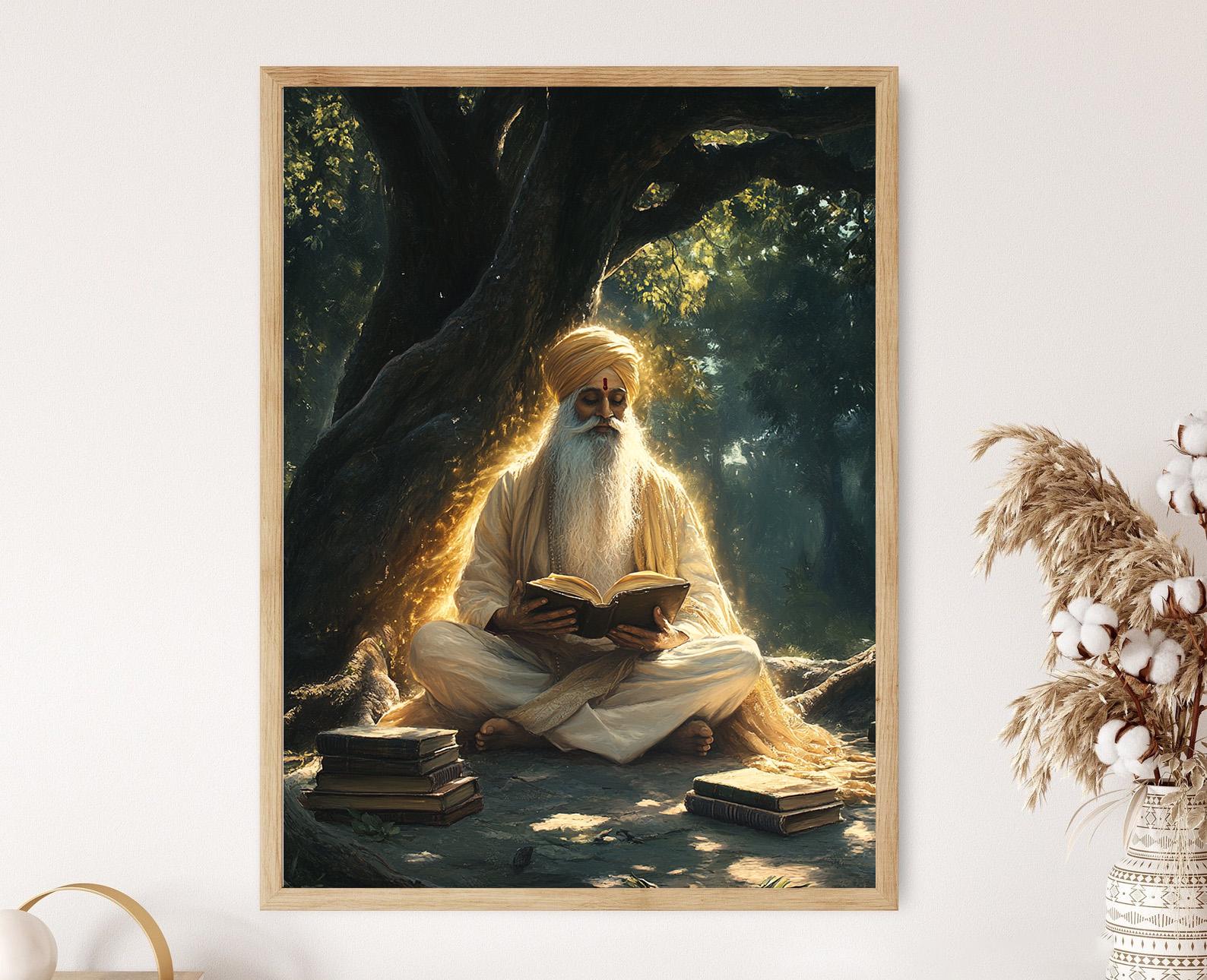 Affiche Guru Nanak – Impression artistique de scène spirituelle sous un banyan