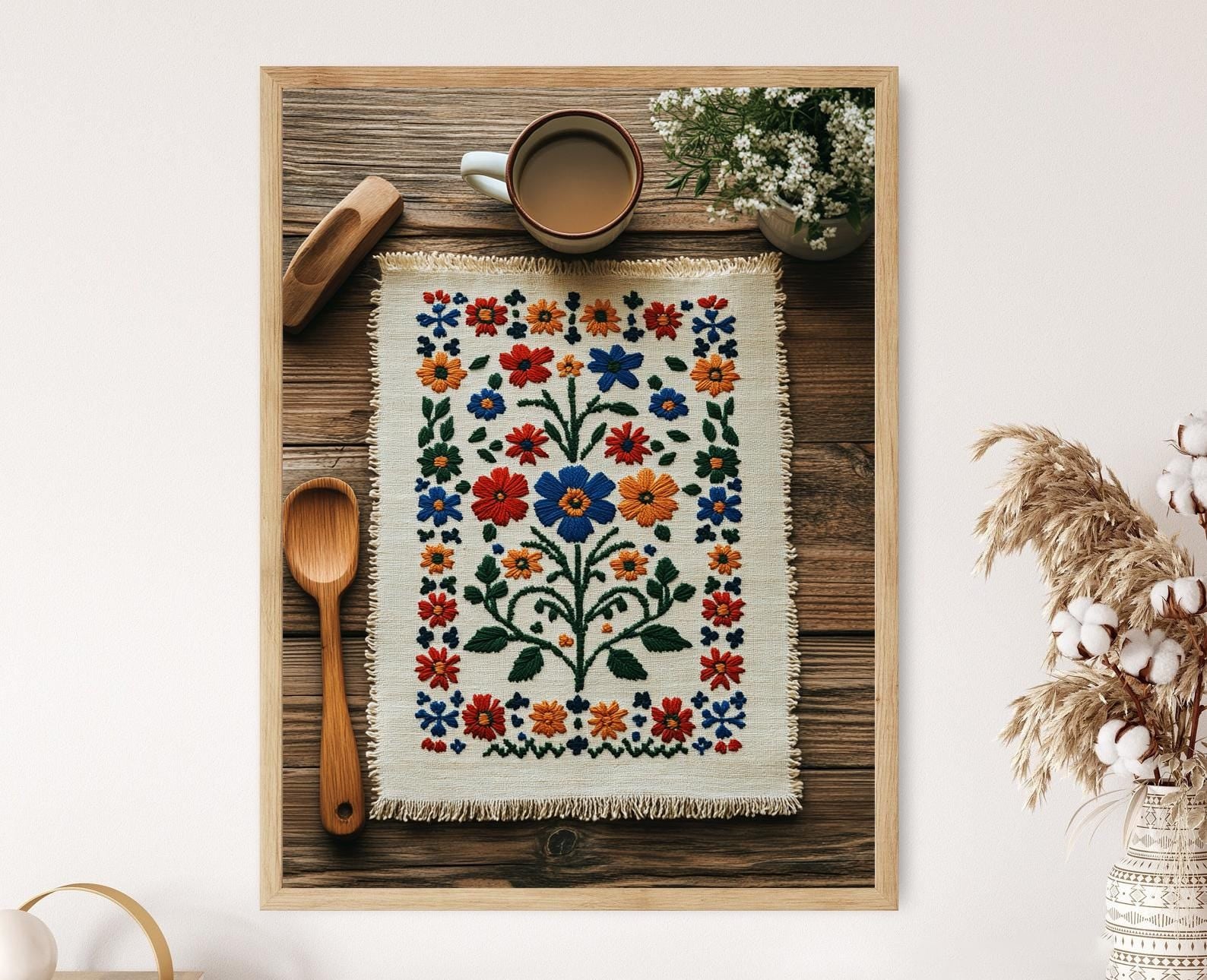 Affiche Hallandssöm – Poster Illustration de lin brodé suédois traditionnel
