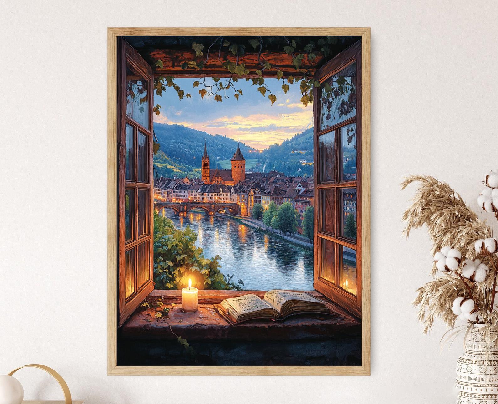 Découvrez cette affiche captivante illustrant le Pont Ancien de Heidelberg et son majestueux château au crépuscule. Avec ses teintes chaudes et sa lumière douce, cette illustration évoque une atmosphère romantique et nostalgique, parfaite pour toute décoration murale. Transformez votre espace avec cet art mural qui invite à la contemplation et à l'évasion.