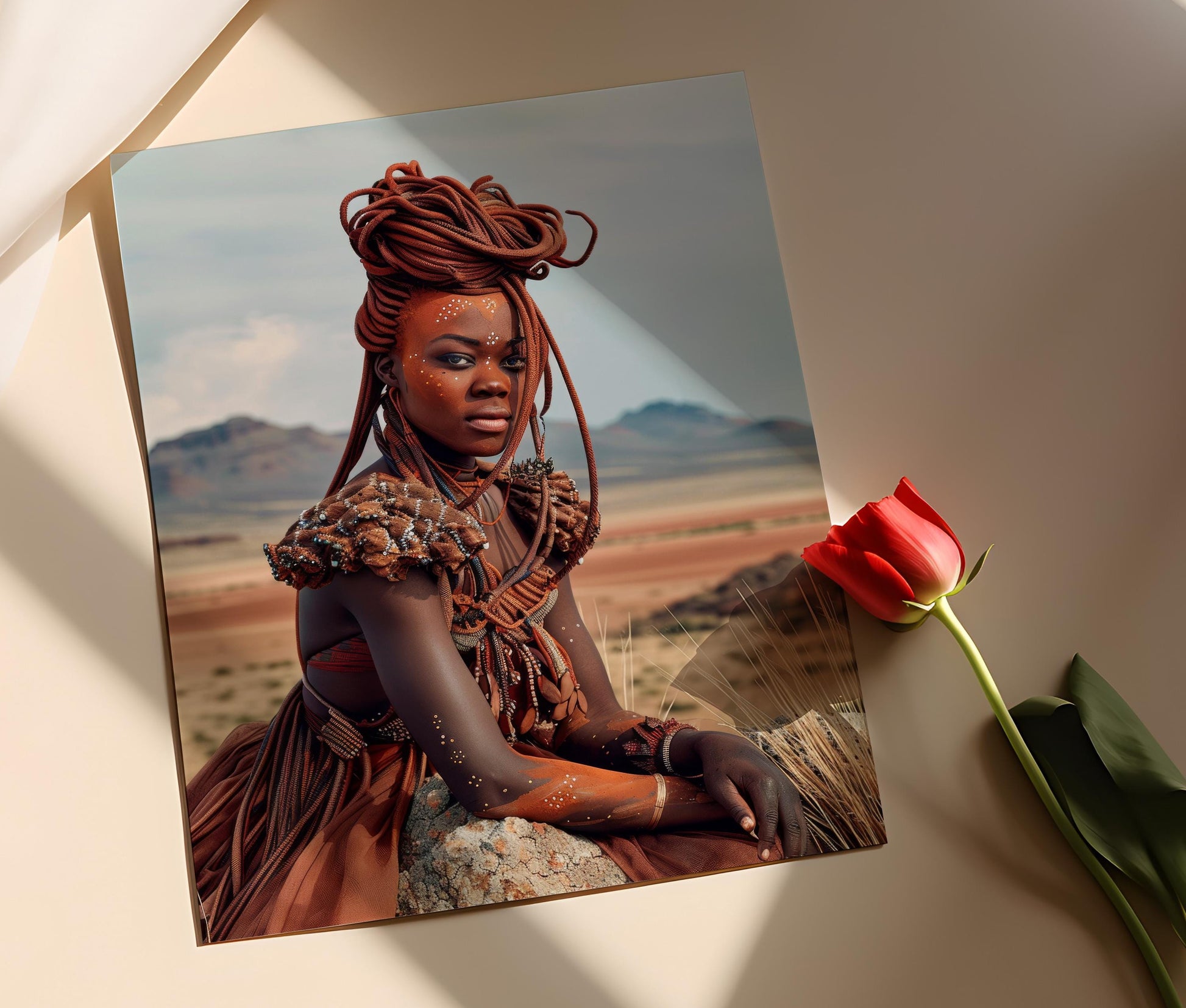 Affiche Himba – Poster Femme Himba, Peinture Corporelle, Paysage Namibien