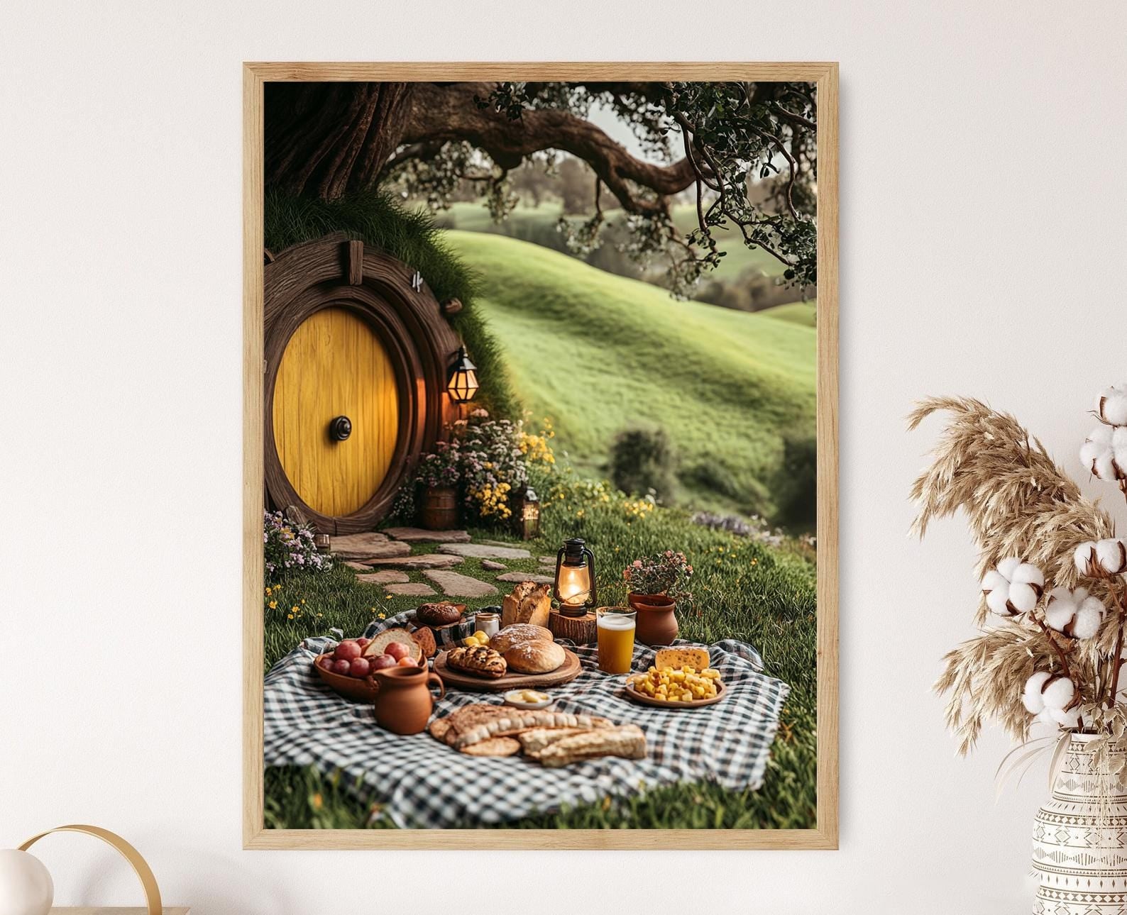 Découvrez cette magnifique affiche qui capture l'ambiance enchanteresse d'un pique-nique whimsical à Hobbiton, sous l'arbre légendaire des fêtes. Avec ses collations hobbit, ses douces collines et ses détails joyeux de la Comté, cette illustration en style cosy apportera une touche de magie à votre décoration murale. Idéale pour les amateurs d'art mural, elle évoque une douceur nostalgique et une invitation à l'évasion.