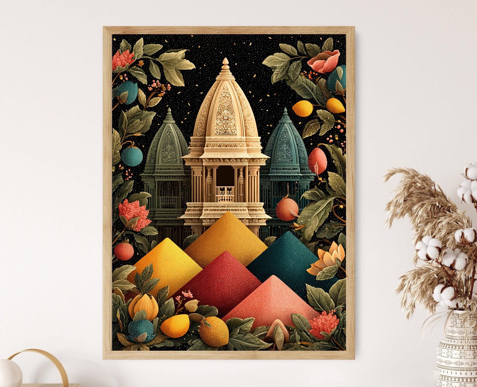 Plongez dans l'esprit festif de Holi avec cette affiche vibrante qui capture l'essence de cette célébration colorée. L'illustration, riche en motifs folkloriques, met en avant des symboles traditionnels tels que la poudre colorée, les douceurs et les feuilles de mangue, créant une décoration murale pleine de joie et de vie. Ce poster mural apporte une touche d'optimisme et de chaleur à votre art mural, invitant à la fête et à la convivialité.