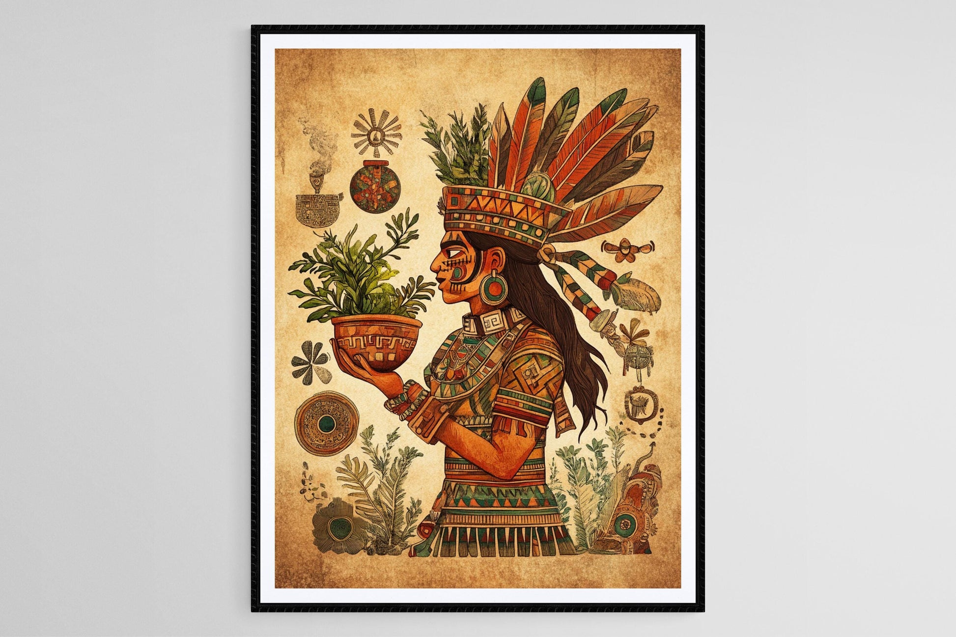 Découvrez cette affiche inspirante mettant en avant Huitzilton, le dieu aztèque de la guérison, représenté avec des herbes médicinales et entouré de symboles de santé. Cette illustration vibrante évoque un sentiment de bien-être et de connexion avec la nature, idéale pour enrichir votre décoration murale. Ajoutez une touche d'art mural dynamique à votre espace et laissez l'énergie revitalisante de Huitzilton transformer votre intérieur.