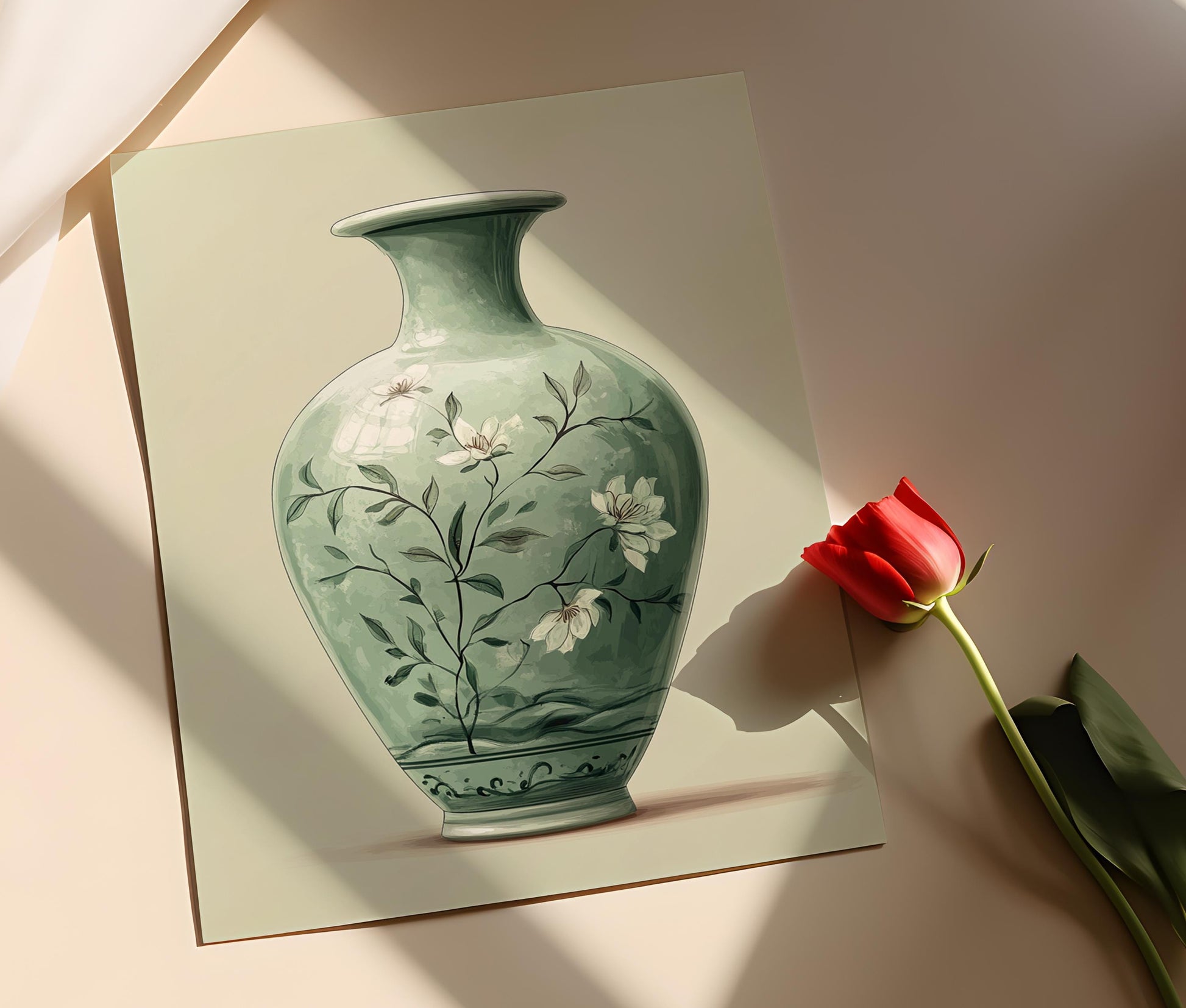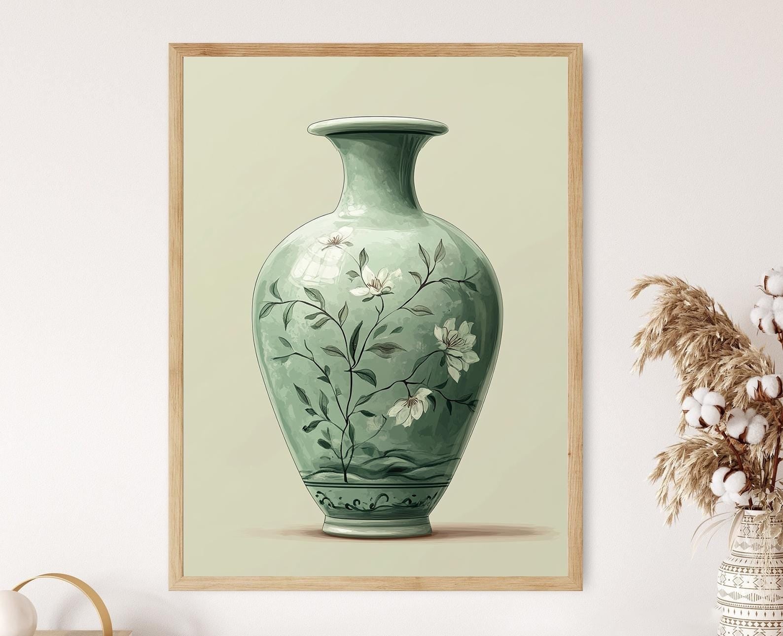 Affiche Illustration Céladon Verte – Poster Ornement Coréen du Sud
