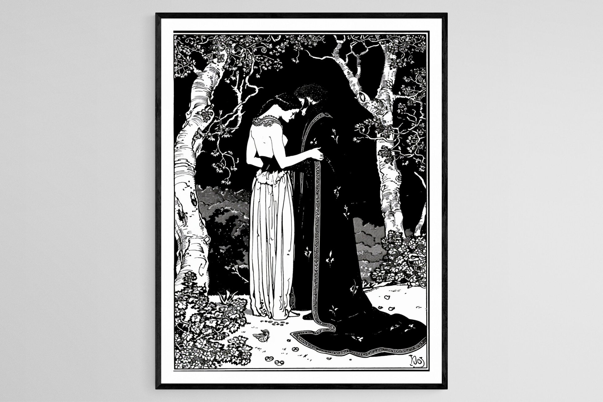 Découvrez l'élégance et la beauté raffinée de cette affiche inspirée par Aubrey Beardsley. Avec ses lignes délicates et ses détails minutieux, cette illustration évoque une esthétique victorienne captivante, idéale pour enrichir votre décoration murale. Ce poster mural est une œuvre d'art mural intemporelle qui saura apporter une touche artistique unique à votre intérieur.