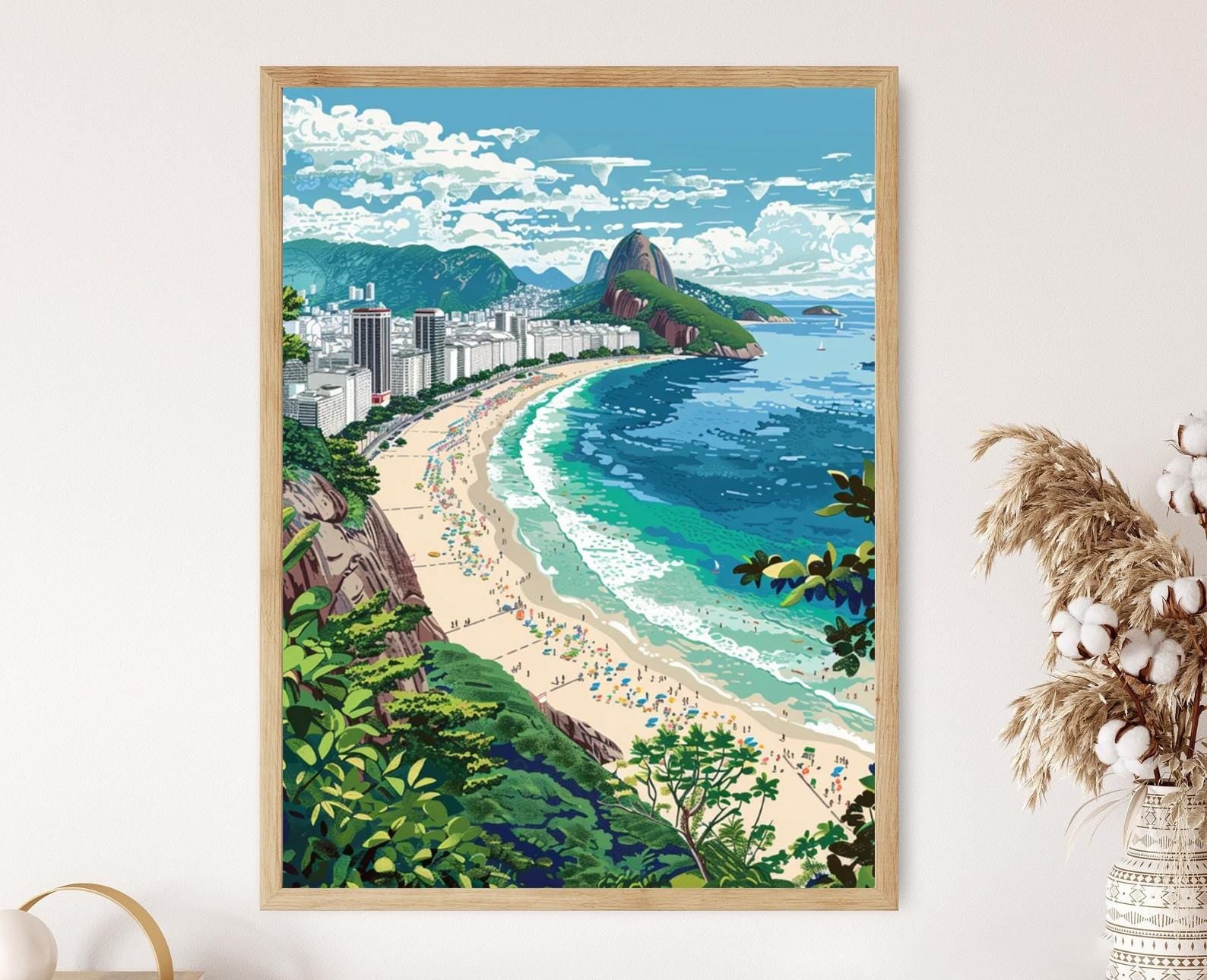Plongez dans la beauté vibrante de la plage emblématique d'Ipanema avec notre affiche illustrée, une véritable célébration de la nature et de l’esprit brésilien. Cette décoration murale, riche en couleurs et en détails, évoque une atmosphère tropicale et festive, parfaite pour apporter une touche d'évasion à votre intérieur. Idéale pour les amateurs d'art mural, cette illustration dynamisera vos espaces tout en invitant à la rêverie.