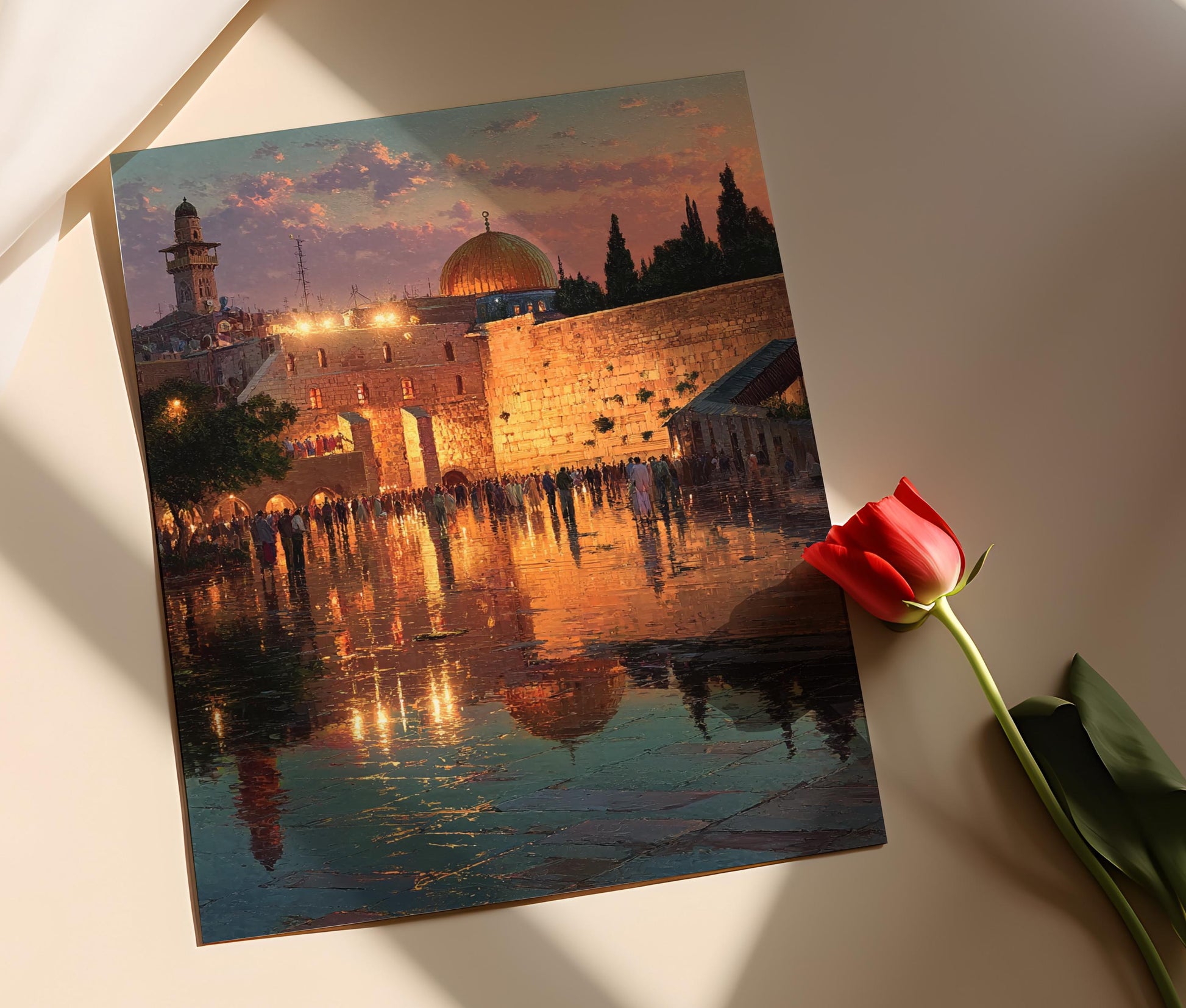 Affiche Jérusalem Crépusculaire – Poster Prières au Mur Occidental, Lumière Dorée