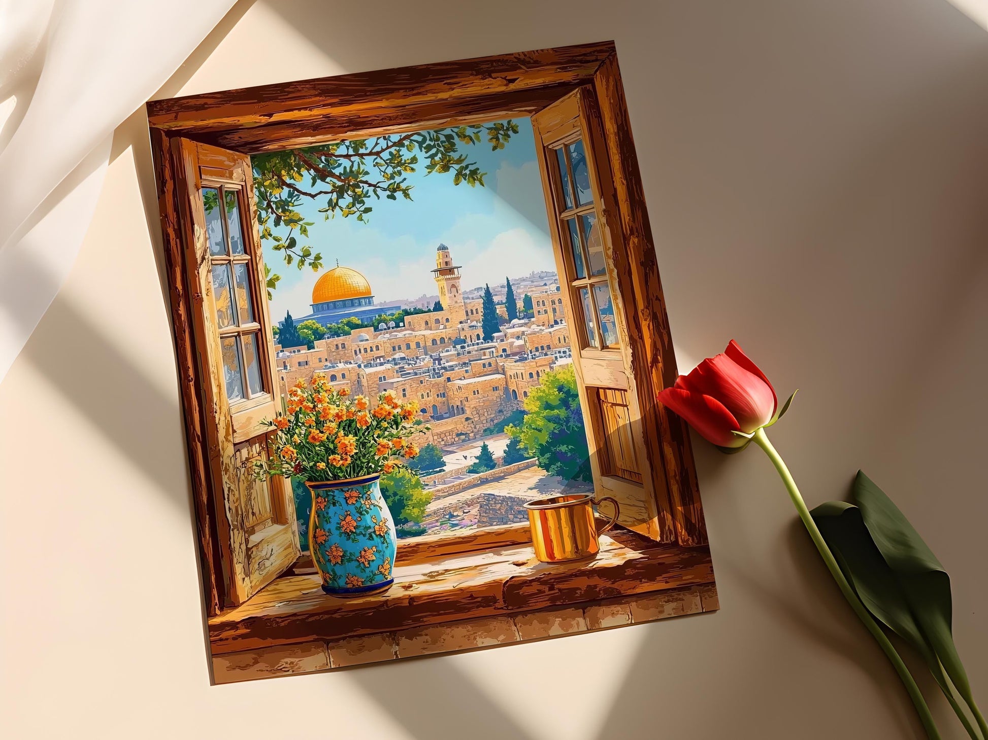Affiche Jérusalem – Impression Art de Fenêtre en Bois avec Vue du Dôme