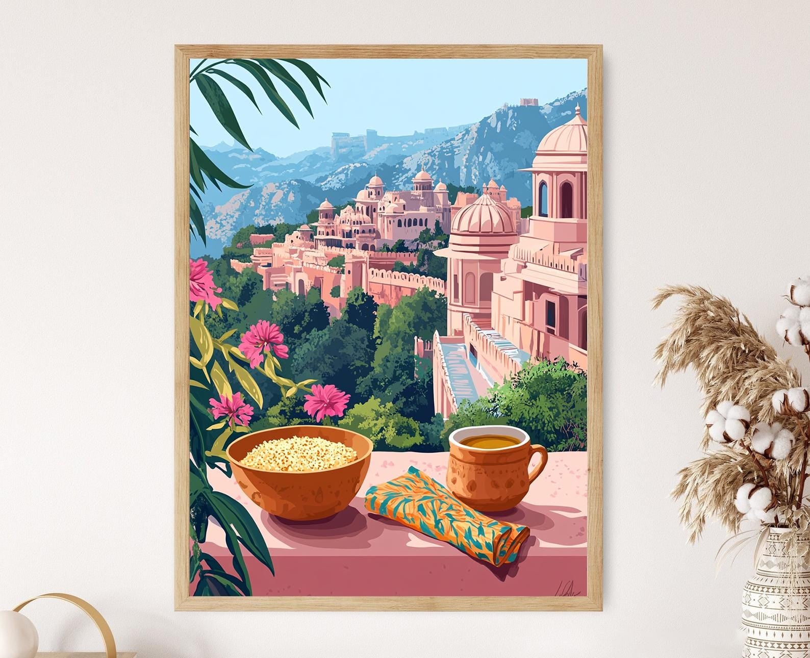 Affiche Jaipur – Art mural petit-déjeuner Rajasthani avec Poha et Chai