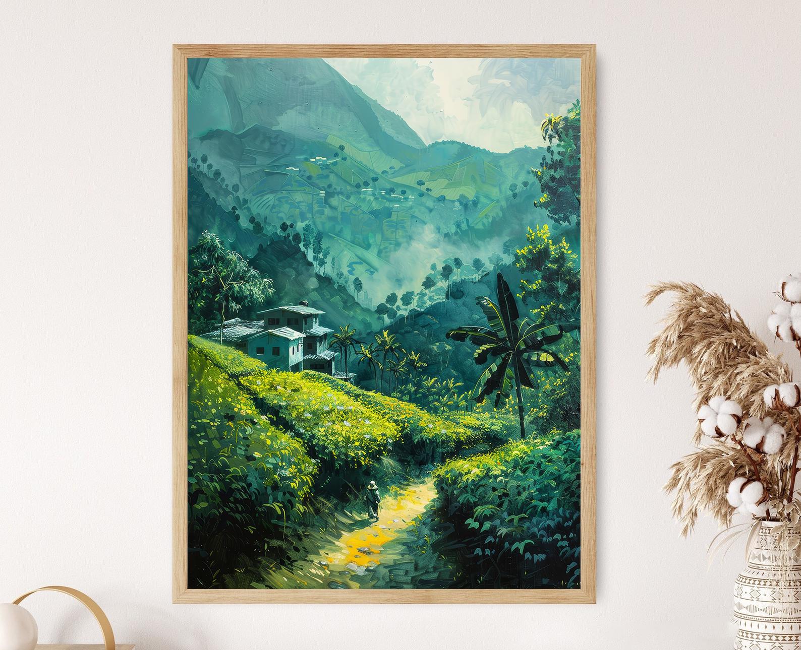 Plongez dans la sérénité avec notre affiche "Jardins de Thé du Bangladesh". Cette illustration murale évoque des collines verdoyantes, symboles de paix et de beauté naturelle, apportant une atmosphère apaisante à votre décoration murale. Idéale pour les amoureux de la nature et les passionnés d'art, ce poster mural saura transformer votre espace en un havre de tranquillité.