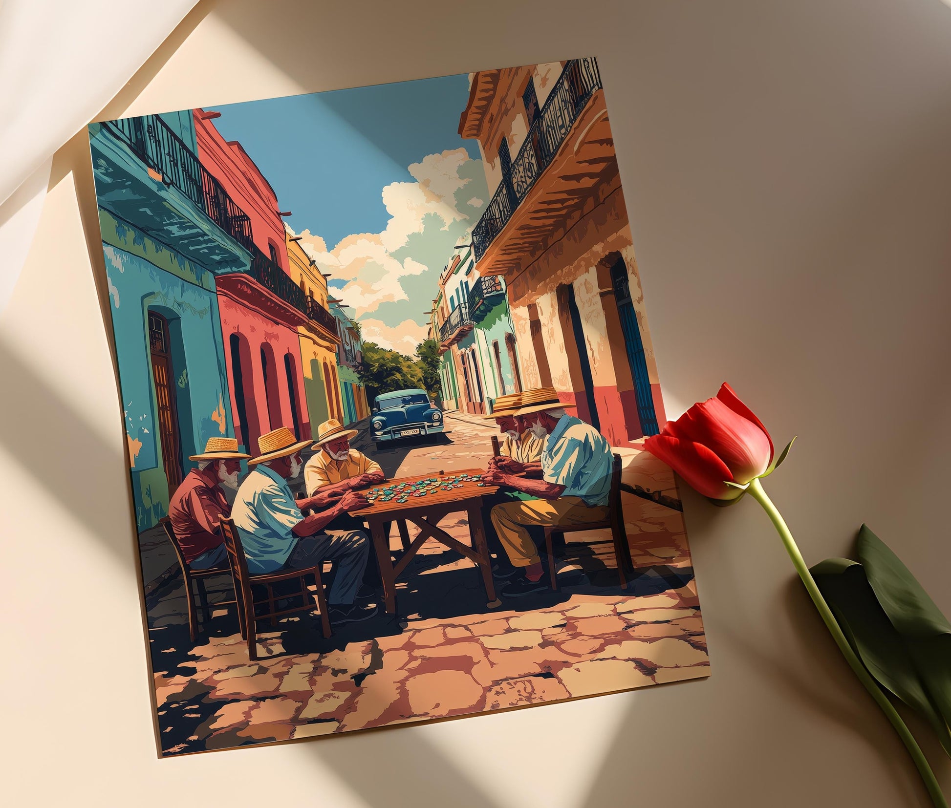 Affiche Jeu de Domino Cubain – Illustration Vintage de La Havane