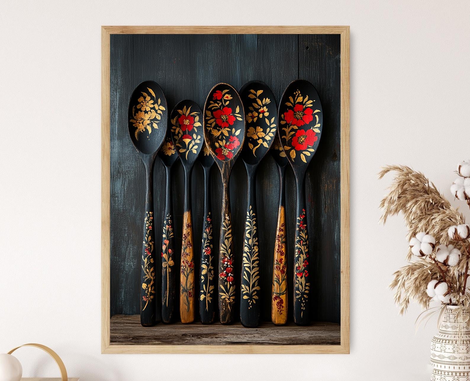 Affiche Khokhloma Russe – Impression Art de Cuillères Traditionnelles