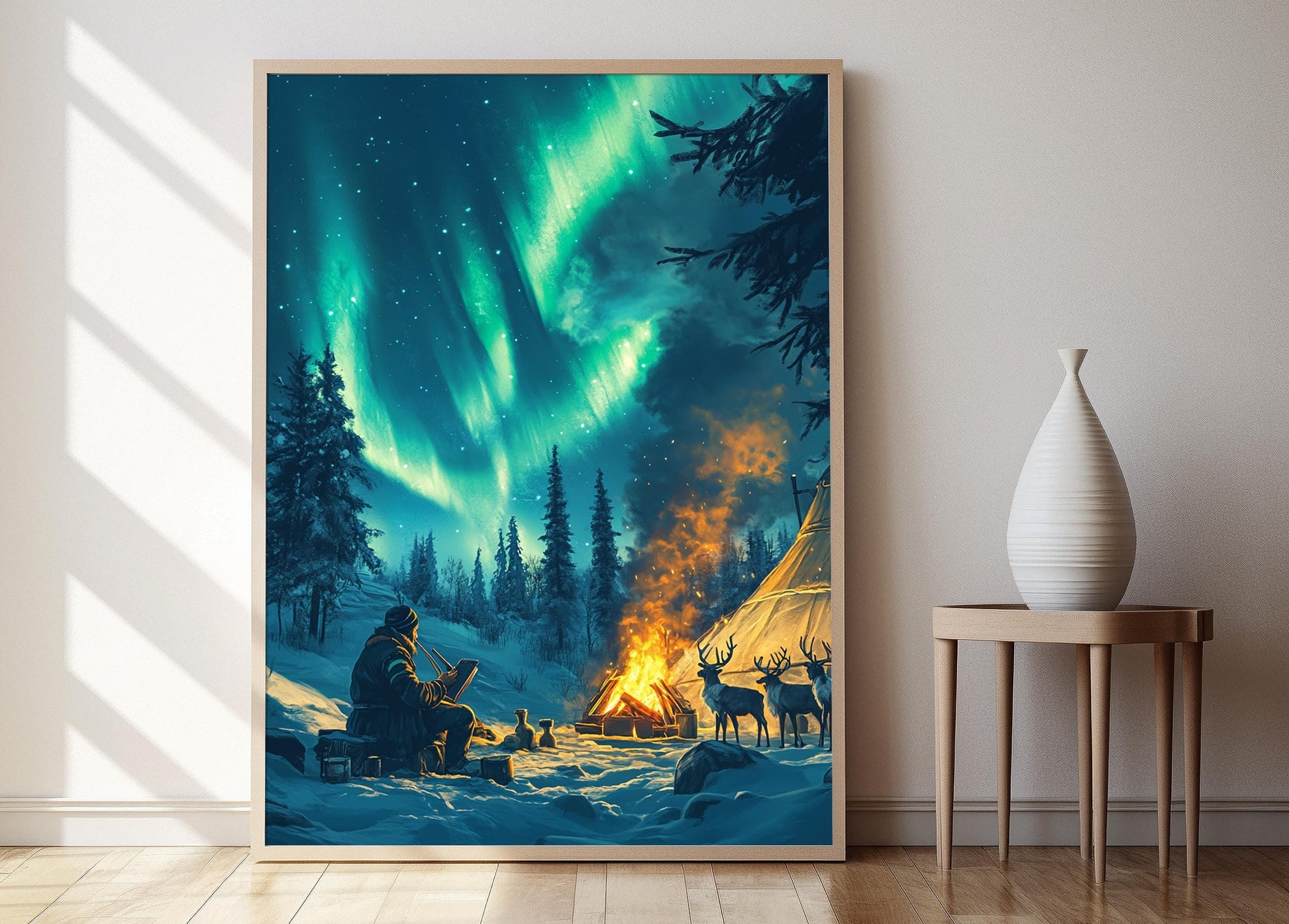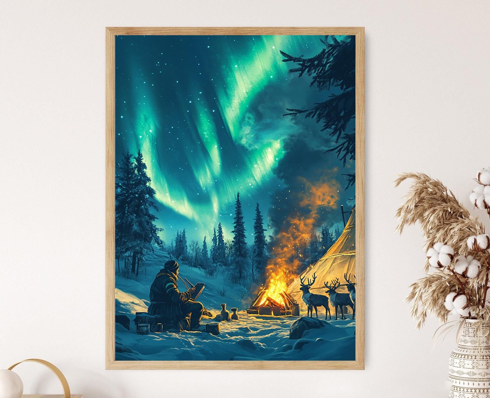 Découvrez cette magnifique affiche qui capture l'essence d'un musicien yakoute jouant du khomus sous les aurores boréales. Cette illustration vibrante évoque la richesse des traditions culturelles des Yakoutes, tout en ajoutant une atmosphère mystique à votre décoration murale. Parfaite pour insuffler une touche d'art mural unique à votre intérieur, cette œuvre d'art résonne avec émotion et profondeur.
