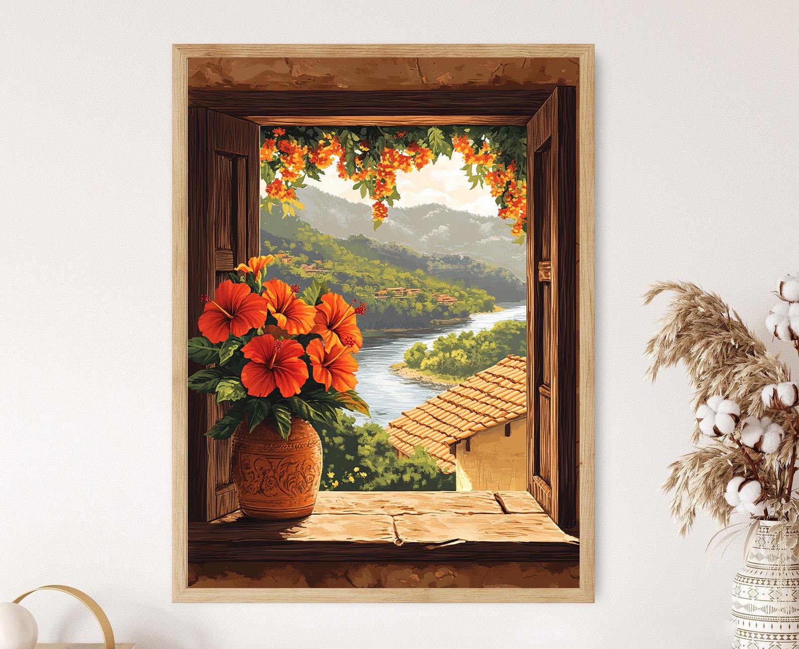 Découvrez cette magnifique affiche qui met en valeur une fenêtre en bois de Khulna, s'ouvrant sur le fleuve Rupsha. L’illustration, agrémentée d’un vase de fleurs d'hibiscus et de motifs floraux sculptés, évoque la richesse du patrimoine bengali tout en apportant une touche d'élégance à votre décoration murale. Parfaite pour créer une ambiance chaleureuse et accueillante, ce poster mural est une véritable œuvre d'art qui saura embellir vos murs avec charme et authenticité.