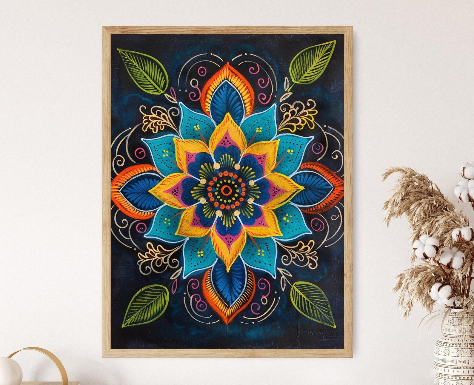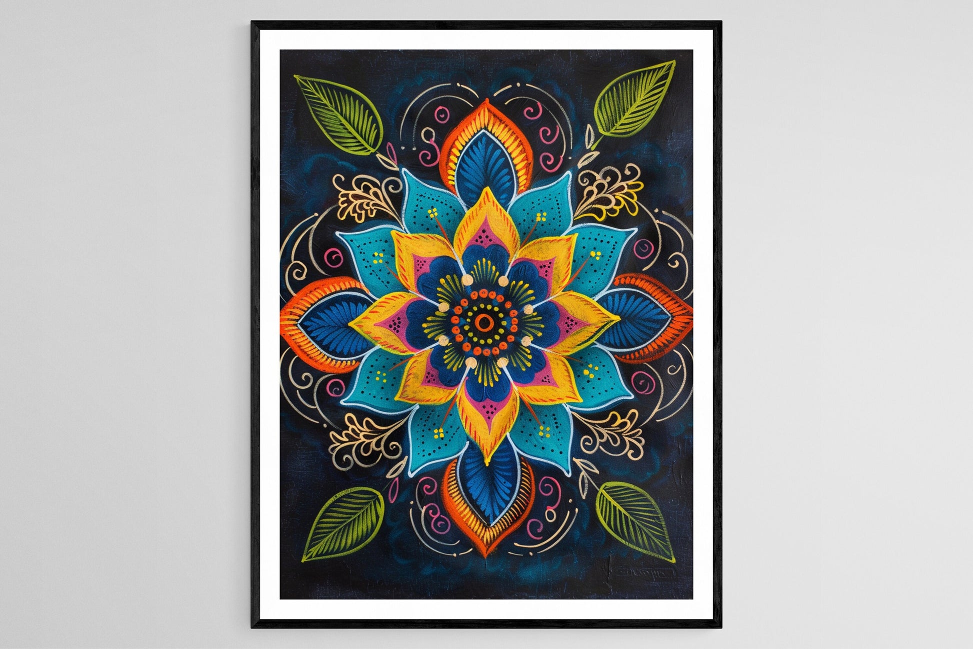 Découvrez notre affiche inspirée du design traditionnel indien Kolam Rangoli, une véritable illustration de l'art mural emblématique. Cette œuvre captivante, avec ses motifs complexes et sa richesse culturelle, évoque une atmosphère de sérénité et de prospérité, idéale pour enrichir votre décoration murale. Ajoutez une touche d'élégance et d'authenticité à votre intérieur avec ce poster mural qui invite à la méditation et à la positivité.
