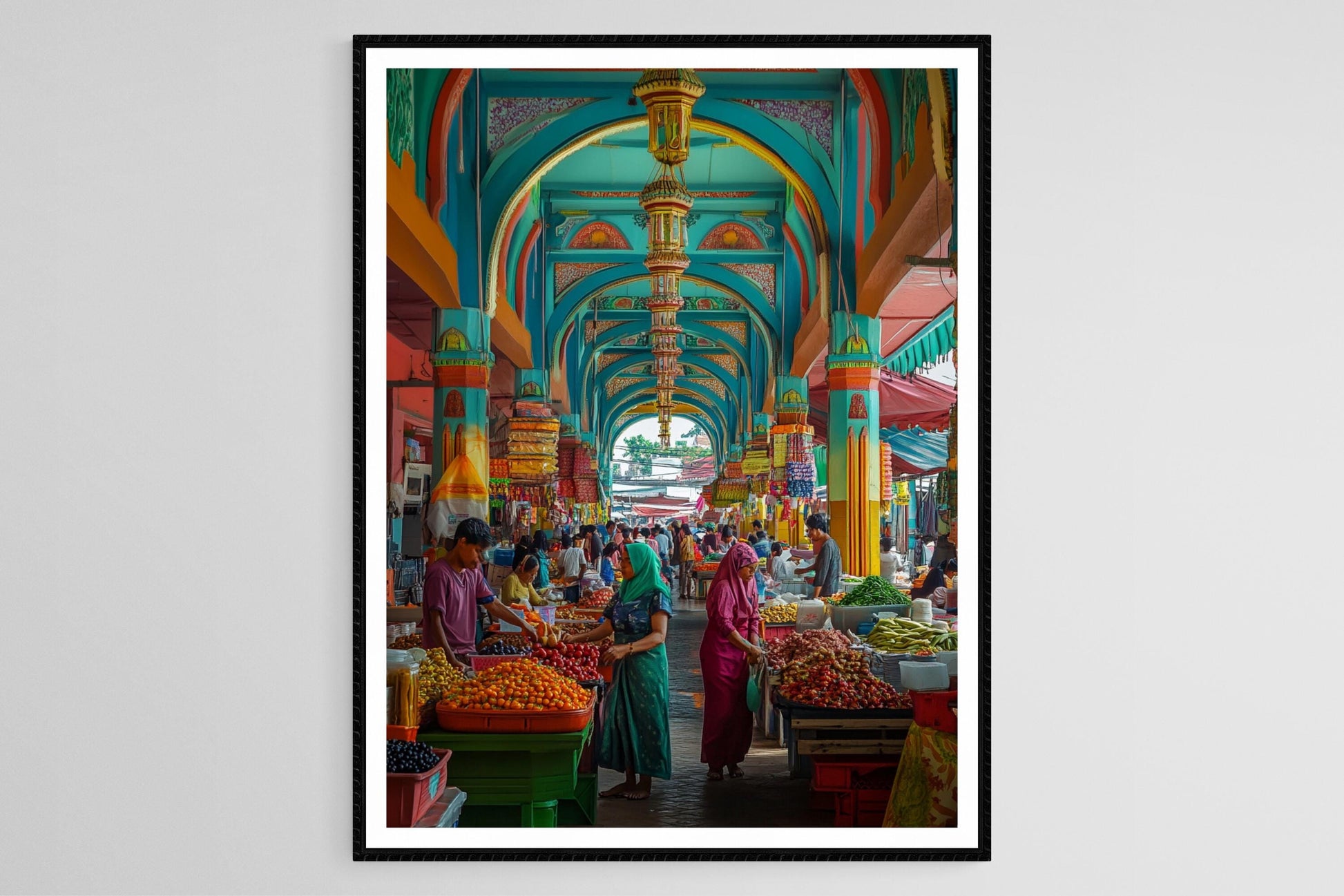 Découvrez l'affiche captivante qui plonge au cœur du marché central de Kota Bharu, en Malaisie, où la richesse des couleurs et des textures se mêle harmonieusement. Cette illustration vibrante, empreinte de vie et de culture, évoque des émotions de convivialité et de découverte, faisant d'elle une décoration murale idéale pour embellir votre intérieur. Apportez une touche d'art mural authentique et chaleureuse dans votre maison avec ce poster mural inspirant.
