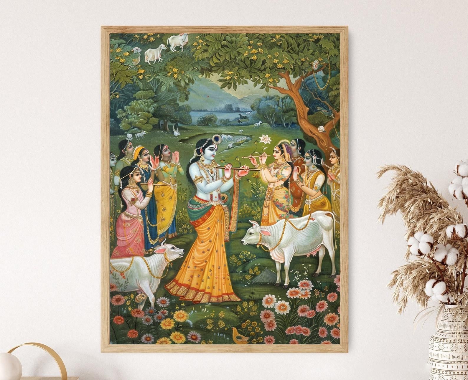 Affiche Krishna Jouant de la Flûte – Poster Scène Pastorale Divine