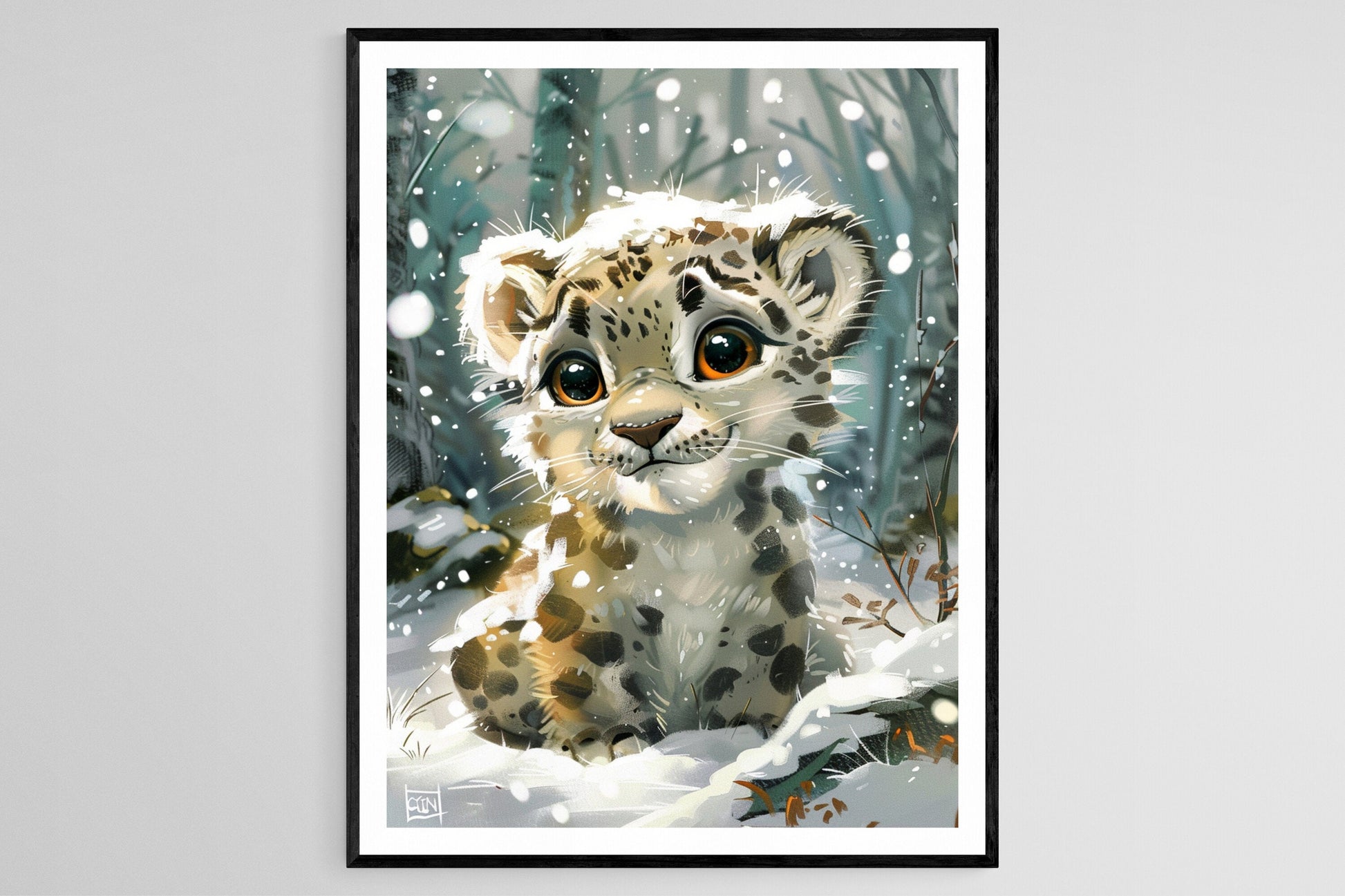 Plongez dans l'univers enchanteur de notre affiche illustrée de léopard des neiges, une décoration murale qui apporte douceur et magie à la chambre de votre enfant. Cette illustration captivante, réalisée avec soin, évoque la beauté sauvage et le charme espiègle de cet animal majestueux, créant une atmosphère accueillante et joyeuse. Ajoutez une touche d'art mural unique qui stimulera l'imagination et réchauffera le cœur.