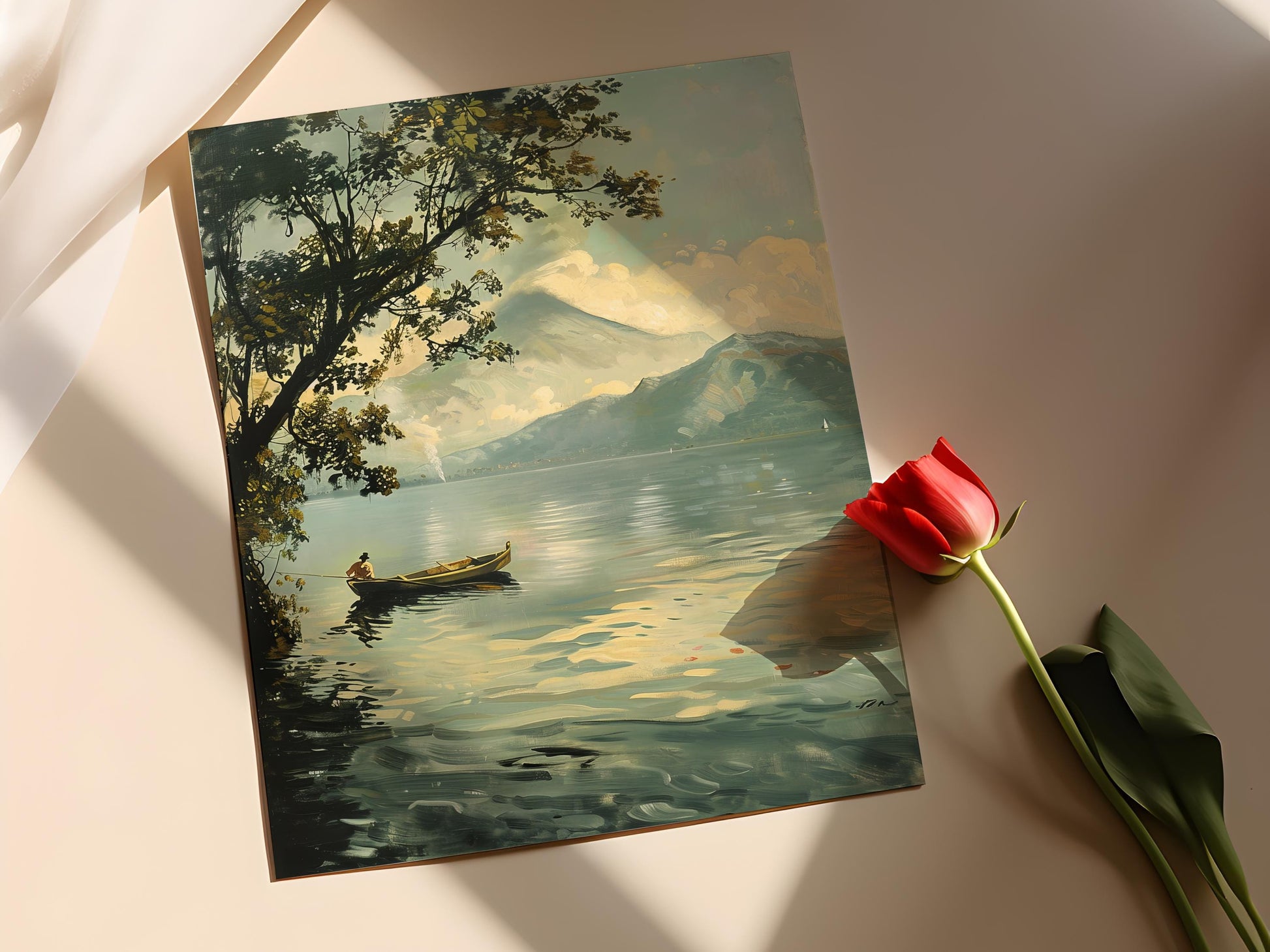 Découvrez cette magnifique affiche qui illustre un pêcheur paisible sur les eaux tranquilles du lac Coatepeque au Salvador. Cette décoration murale évoque la sérénité grâce à ses reflets apaisants et son ambiance naturelle, tout en mettant en valeur la verdure luxuriante et les volcans lointains. Parfaite pour ajouter une touche de calme et d'évasion à votre espace, cette illustration artistique célèbre la beauté captivante de la nature salvadorienne.