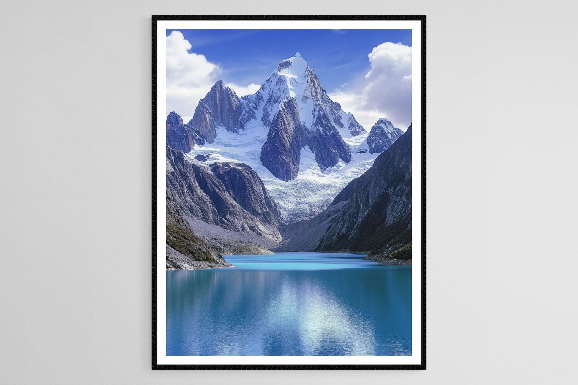 Découvrez cette magnifique affiche représentant le lac Parón au Pérou, où les eaux turquoise glaciaires se mêlent aux sommets majestueux des Andes. Cette illustration captivante évoque une sensation de sérénité et d'émerveillement, faisant de ce poster mural une pièce de choix pour votre décoration murale. Apportez une touche d'art mural inspirant à votre intérieur avec cette œuvre qui célèbre la beauté naturelle des paysages andins.
