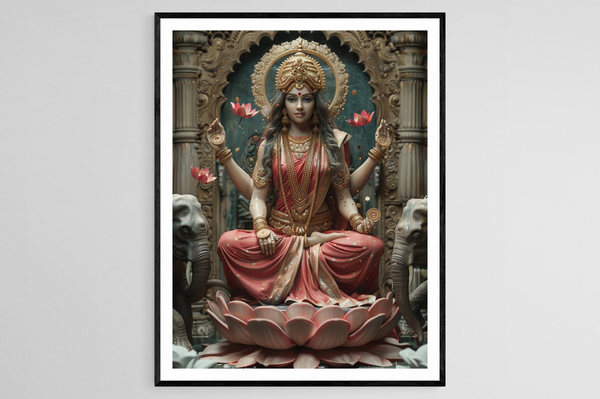 Affiche Lakshmi sur Lotus – Poster de la Déesse de la Richesse