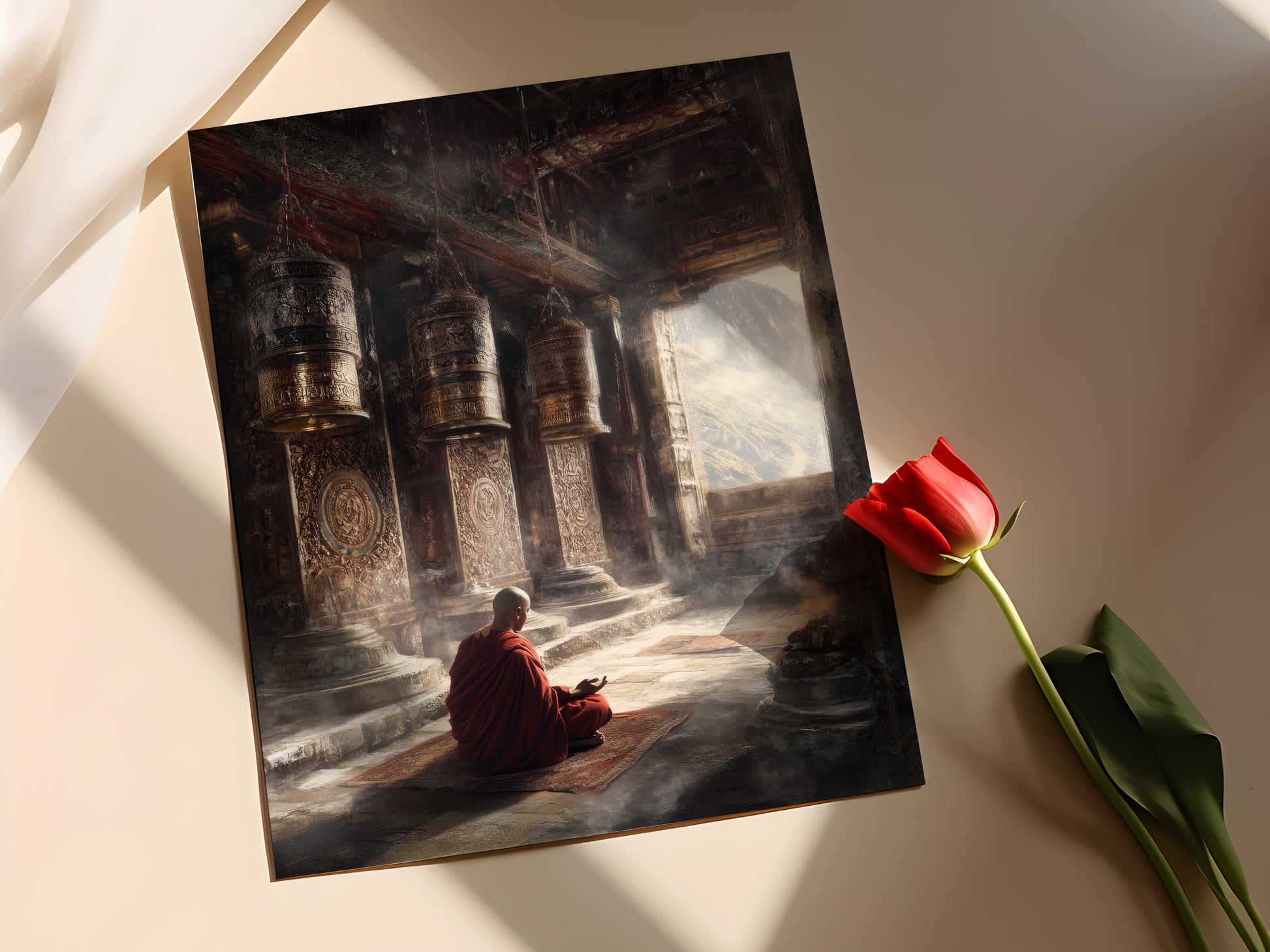 Affiche Méditation Bouddhiste – Poster Art de Monastère Népalais
