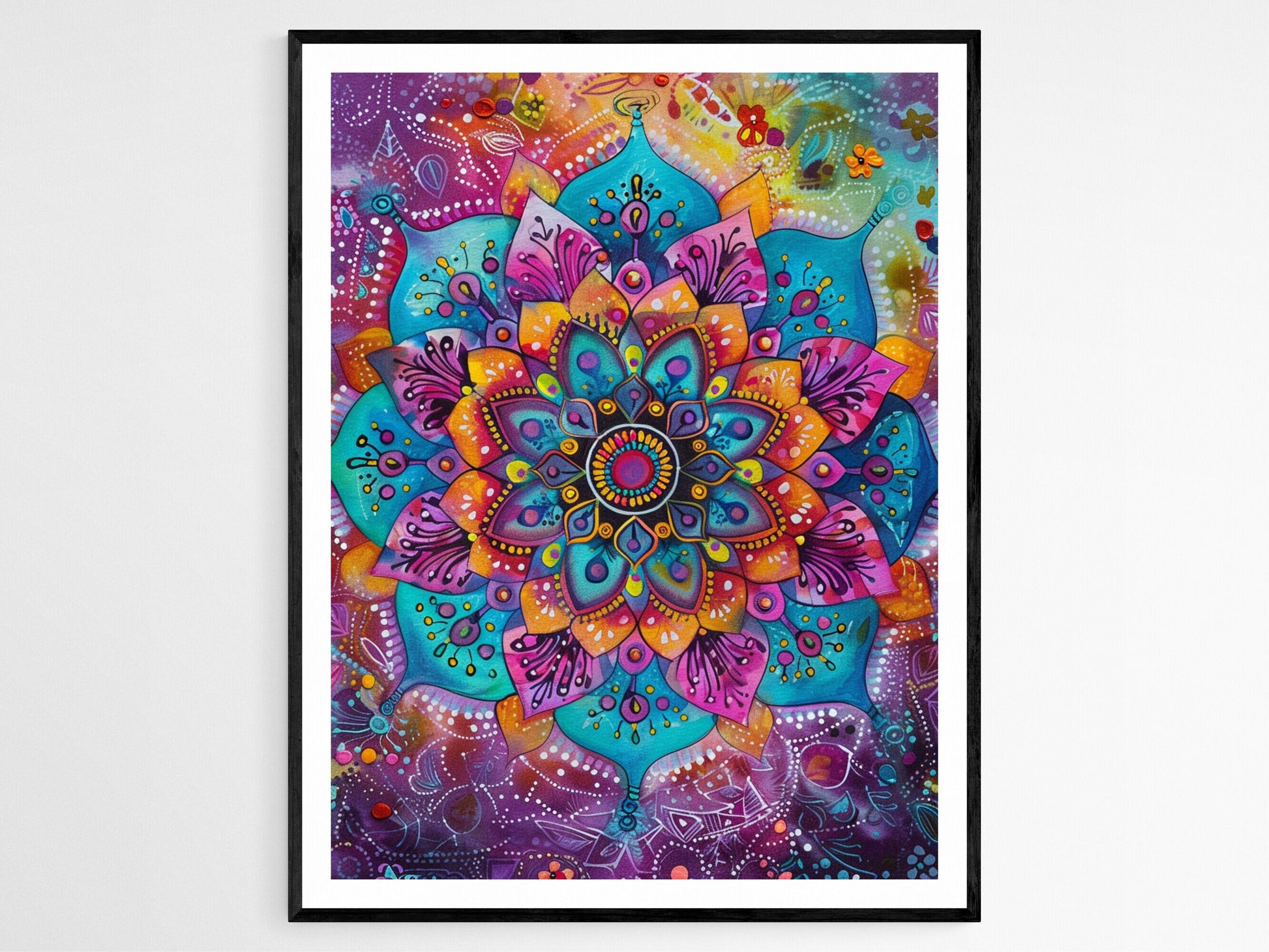 Découvrez notre affiche inspirante aux motifs de mandala, une illustration qui évoque la sérénité et l’harmonie. Cette décoration murale captivante, avec ses couleurs vives et ses détails raffinés, apportera une touche unique et apaisante à votre art mural. Plongez dans l'univers complexe et unifié de ce poster mural qui saura transformer votre espace en un refuge de paix.