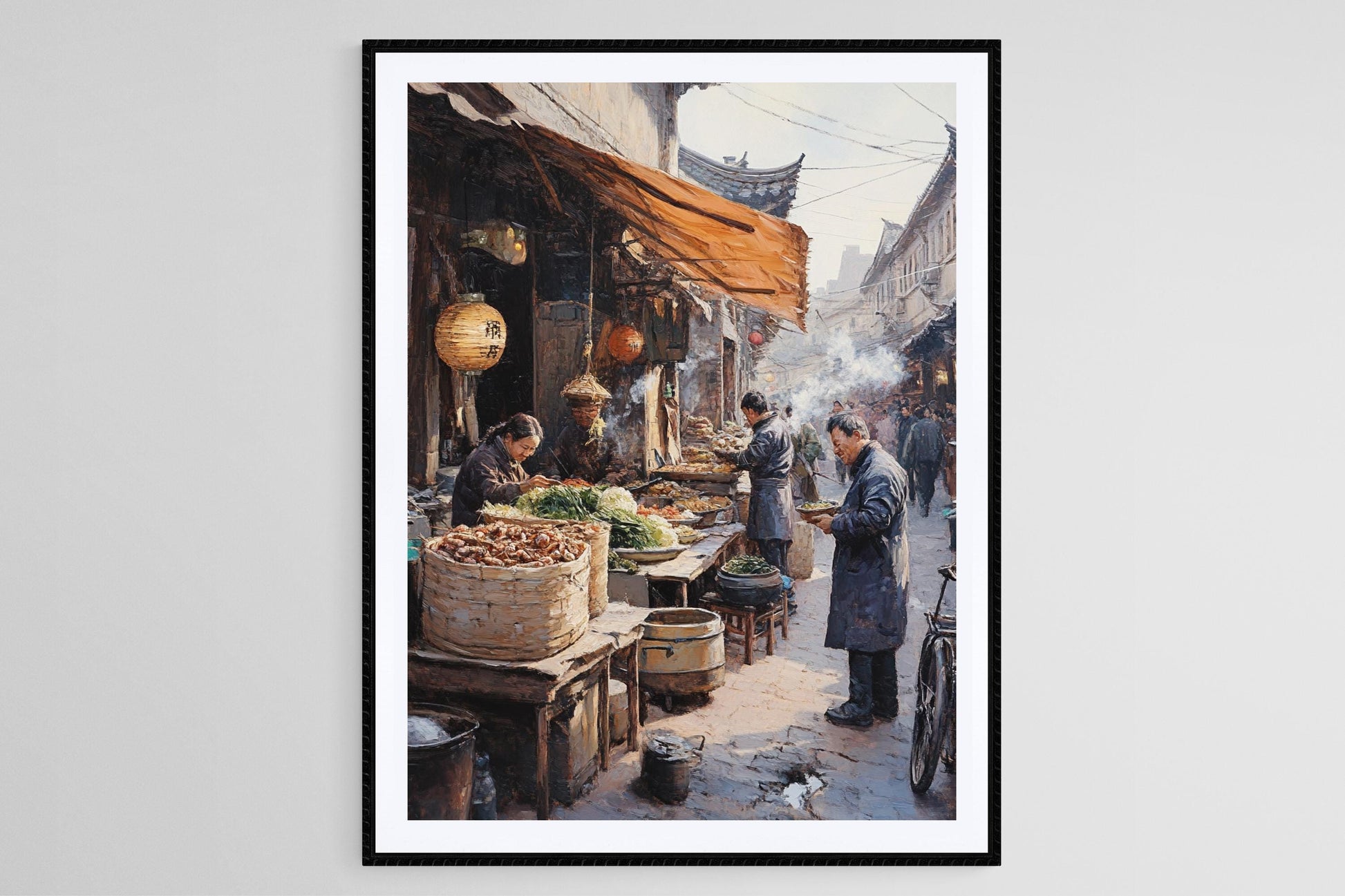 Affiche Marché Alimentaire Hutong – Poster Artisans Locaux et Produits Frais