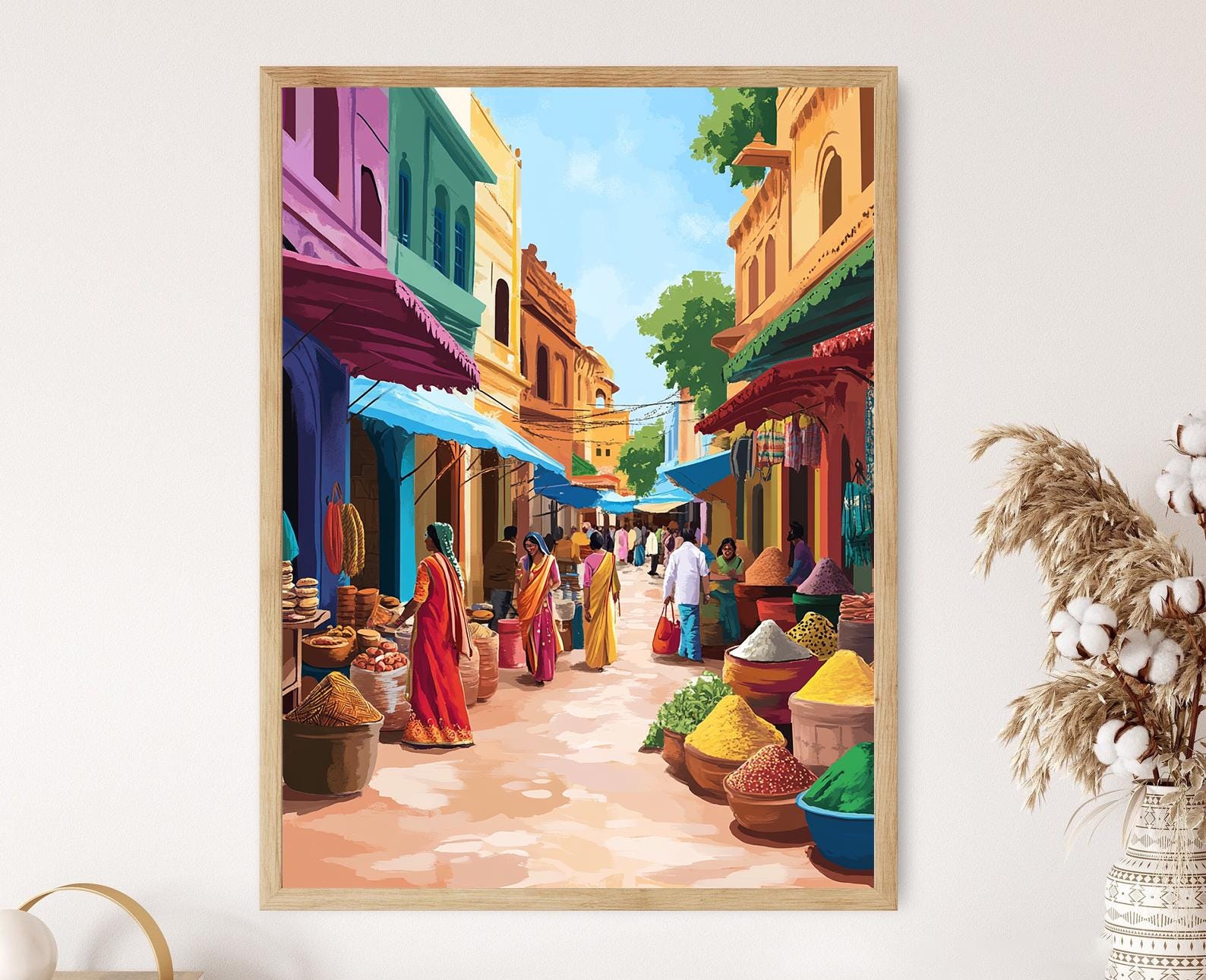 Affiche Marché aux Épices de New Delhi – Poster Art Indien Élégant