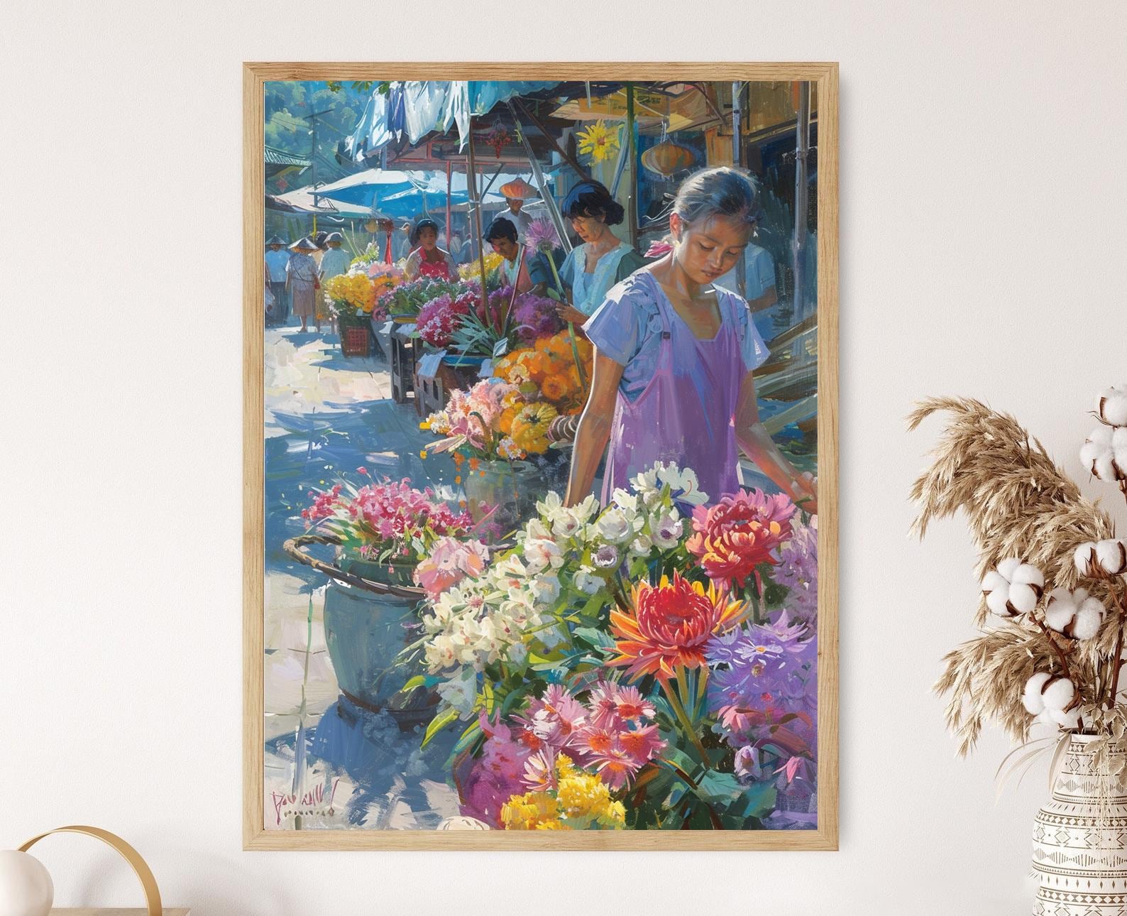 Plongez dans l'effervescence colorée du marché aux fleurs philippin avec cette magnifique affiche. L'illustration vibrante évoque une atmosphère joyeuse, où les fleurs tropicales éclatent de couleurs et embaument l'air de parfums envoûtants. Ce poster mural est une véritable célébration de la nature, idéale pour apporter une touche de fraîcheur et d'exotisme à votre décoration murale.