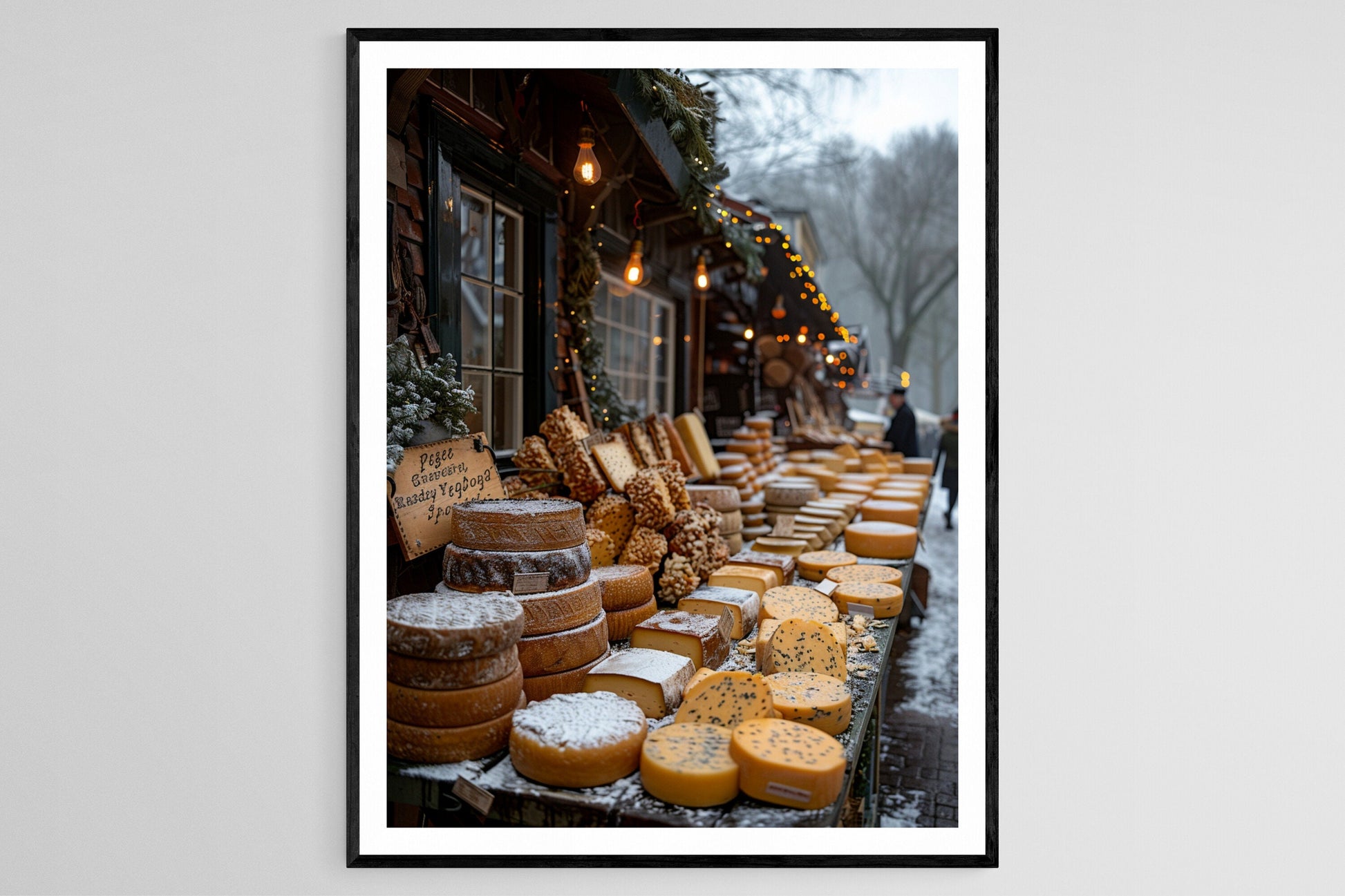 Plongez dans l'atmosphère animée d'un marché traditionnel néerlandais avec cette affiche vibrante représentant le festival du fromage de Gouda. Cette illustration captivante met en avant des rangées de meules de fromage dorées, des vendeurs en tenues traditionnelles, et la riche histoire de la fabrication du fromage aux Pays-Bas. Les couleurs éclatantes et les détails minutieux transmettent l'esprit festif et le patrimoine culturel de ce marché emblématique, faisant de ce poster mural une véritable pièce de décoration murale qui réchauffera votre intérieur.