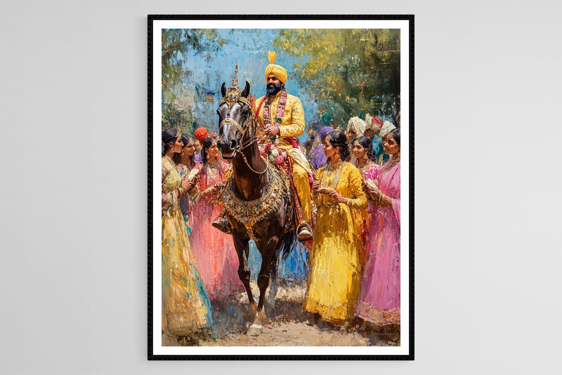 Affiche Mariage Punjabi – Impression artistique de cortège traditionnel